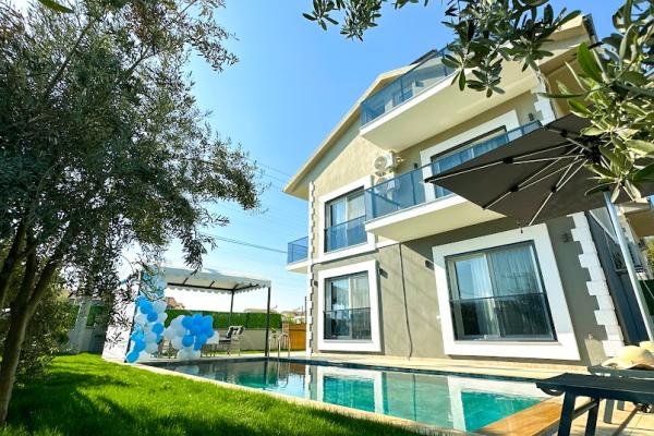 Republic of Turkey, Ministry of Culture and Tourism Certificate No: 48-8989 Rental Villa – Fethiye / Eldirek Neighborhood Description: Located in Eldirek Neighborhood, Fethiye, “Villa Aslanı” is an ideal holiday villa for those seeking peace amidst greenery. With a capacity of 6 guests, it offers 5 beds, 3 bathrooms, a private swimming pool, and a spacious garden, ensuring a tranquil vacation in nature. Thanks to its location, it promises a peaceful holiday experience. It is perfect for families and groups of friends. Features: Location: Fethiye, Eldirek Neighborhood (close to Ölüdeniz) Capacity: 6 People 5 Beds 3 Bedrooms 3 Bathrooms Private Swimming Pool Garden, surrounded by nature Parking available Air conditioning, Wi-Fi, fully equipped kitchen
