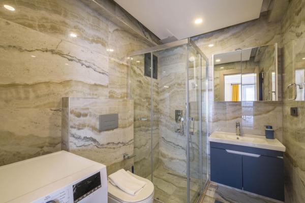 “Ministry of Culture and Tourism housing permit document number: 48-1134” About HK Serenity Villa Located in Calis, one of the most popular areas of Fethiye, Villa Serenity HK with 3 bedrooms and private pool is the perfect choice for families and groups of friends. At the entrance, a wonderful landscape, a pool of perfect size and a garden that will make you feel like you are in a 5-star hotel welcomes you. It has a secure and shaded parking lot where 2 cars can easily fit in, and it has an automatic door. Offering a wonderful accommodation and holiday, HK Serenity Villa has been designed and furnished for you to experience a complete luxury villa holiday. Our Villa, where you will find yourself in a very comfortable environment and will not look for the comfort of your home, has 3 floors and has a spacious and wide usage area. Since it is located right on the corner, it is not compressed by other villas and offers a spacious usage area. Our villa, which you will not want to leave the pool and garden area, was opened on 1 June 2022 to the service of those who are looking for an elite accommodation. 1. Bedroom: There is a double bed, bedside table, wardrobe, air conditioner, balcony, toilet and bathroom. 2. Bedroom: There is a double bed, wardrobe, air conditioner, balcony, toilet and bathroom. 3. Bedroom: There are two single beds, a wardrobe, air conditioning, a bathroom and a toilet. Kitchen: In a separate modern kitchen, there is a refrigerator, washing machine, oven, stove, dinnerware, cutlery set, pots, pans, glasses and other kitchen equipment. Living Room: There is a sitting group, TV, air conditioner, dining table. There is also a sink on the ground floor. Garden : There is a private swimming pool, sun loungers umbrella, dining table, private barbecue area. Security: For your safety, HK Serenity Villa has Security camera and Alarm System. You can check the camera recordings during your stay. +Information All products such as sheets, pique pillowcases, bath towels, hand face towels, foot towels are washed by our cleaning company and delivered to our guests as clean, and an interim cleaning is provided every 7 days. In the interim cleaning, the bed linen, towels, etc. of our weekly rental villa are replaced with new ones and the bathroom is cleaned. Interim Cleaning is a service offered to our guests who stay in our rental villas for 14 days or more. + Alternative options We recommend our guests looking for alternative accommodation in the region to check out Villa Duha.