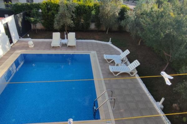 ''Housing permit from the Ministry of Culture and Tourism, document no: 48-1131'' Villa Sunday will provide you with natural privacy and a large 500 mt garden surrounded by pine trees. Villa Sunday in the perfect location welcomes holidaymakers. Local bars and restaurants are within walking distance. Villa Sunday is well equipped and all rooms have air conditioning. All kinds of kitchen utensils are provided. The villa itself has a private gardener. Pool and garden maintenance is done daily. Villa Sunday has a private, sun-proofed car park with a secure gate. We provide internet and wifi access throughout the villa for your pleasure and needs. The villa is protected by security cameras. Food delivery and shopping deliveries can be made locally for free so all you have to do is enjoy the sun, the pool and the villa. 1. Bedroom: There is a double bed, bedside table, wardrobe, air conditioner, toilet and bathroom. 2. Bedroom: Bedroom: There are two single beds and a nightstand. 3. Bedroom: There is a double bed, air conditioner, wardrobe, bedside table, balcony, toilet and bathroom. Kitchen: There are refrigerator, washing machine, oven, stove, kattle, dinnerware, cutlery set, pots, pans, glasses and other kitchen equipment in the American kitchen. Living Room: There is a sitting group, TV, air conditioner, balcony furnished with a sitting group. Garden: There is a communal swimming pool, sun loungers and umbrellas. +About the region Popular tourist destinations such as Hisaronu and Oludeniz are just a 5-minute walk from the villa.
