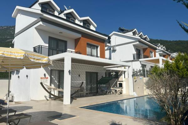 Picturesque 4 bedroom Private villa with Private swimming pool in Calis with a beautiful panoramic forest and mountain view. Nice well groomed garden. The villa has perfect location - its close to Calis Beach and with their entertainment and night life and to Fethiye center. Property De-sss-ion: Living area – 100 sqm American Kitchen and Living Room Saloon 4 Bedrooms, 3 Bathrooms & 1 WC (2 Double Bed, 4 Twin Bed Room (4 Single Beds),1 Sofa Bed which a coverts to bed) AC in each room Pool view from Kitchen’s Balcony Electrical equipments: AC in each room, TV in living room, iron and iron board Washing machine, dishwasher, fridge, freezer, oven, hob and extractor fan, microwave, toaster, kettle Activities available locally: Paragliding, Quad bike safari, Jeep safari, Rafting, Diving, Microlite flights, Horse riding, Walking, Mountain biking, Boat trips, Parasailing, Fishing trips