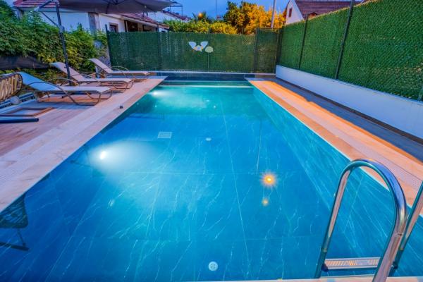 ''Aufenthaltserlaubnis des Ministeriums für Kultur und Tourismus, Dokumentennummer: 48-12658'' Diese private Villa befindet sich in Fethiye, wo sich Blau und Grün treffen, und erwartet unsere geschätzten Gäste, die einen ruhigen Urlaub abseits des Lärms und der Menschenmassen der Stadt verbringen möchten. Mit seinem privaten Pool und dem großen Garten bietet es eine hervorragende Unterkunft und einen Bereich, in dem Sie grillen können. Diese Villa im amerikanischen Küchenstil verfügt über 3 Schlafzimmer und 2 Badezimmer. Wenn Sie Ruhe und Komfort suchen, bietet diese Villa den perfekten Aufenthalt. 1. Schlafzimmer: Doppelbett, Nachttisch, Kleiderschrank, Badezimmer 2. Schlafzimmer: Doppelbett, Nachttisch, Kleiderschrank. 3. Schlafzimmer: 2 Einzelbetten, Kleiderschrank, Nachttisch Küche: Moderne amerikanische Küche mit Geschirrspüler, Backofen, Kühlschrank Wohnzimmer: Es gibt eine Sofagarnitur, TV, Klimaanlage. Garten: Privater Swimmingpool, privater Grillplatz (Kamin), Möbel, Tisch, Sonnenliegen. *** Alternative Optionen Bitte überprüfen Sie die Villen, die wir anbieten können, als gleichwertig für unsere Kunden, die in Villa Beha, Villa Alternatives, Villa Duha und Villa Kasper übernachten möchten.