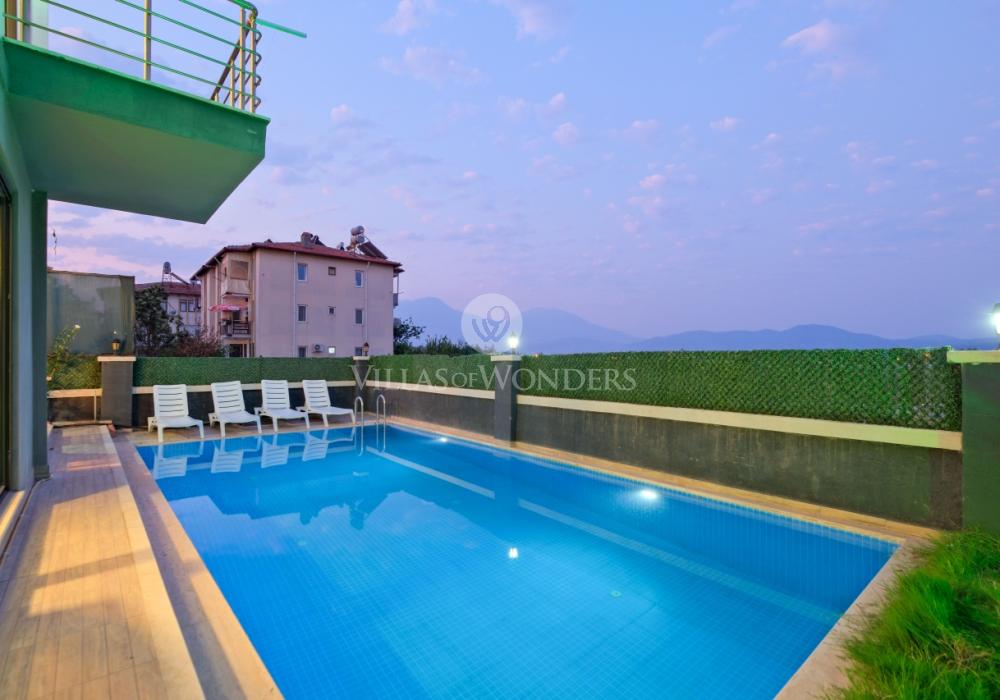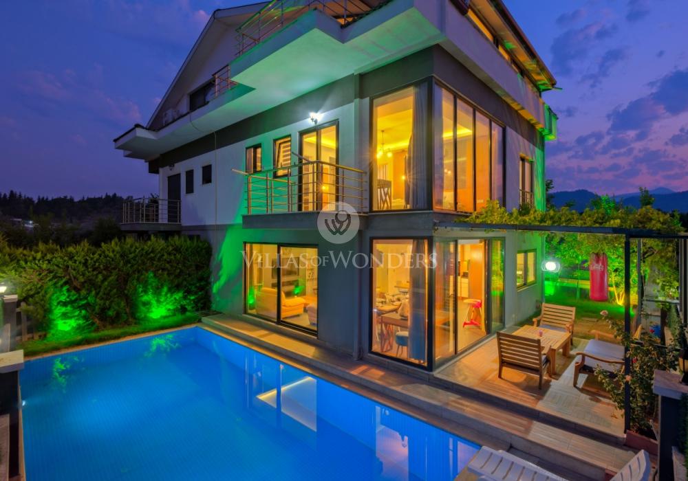 Villa Bee Blue ist eine Ferienvilla im Stadtteil Karagedik in Fethiye, mit einer Kapazität von 8 Personen und einem privaten Swimmingpool. Die Villa zeichnet sich durch ihre ruhige Lage, großzügige Wohnbereiche und moderne Inneneinrichtung aus und bietet ihren Gästen einen komfortablen und angenehmen Aufenthalt. Ideal für Familien und Freundesgruppen, ist Villa Bee Blue perfekt für alle, die einen erholsamen Urlaub inmitten der Natur verbringen möchten.