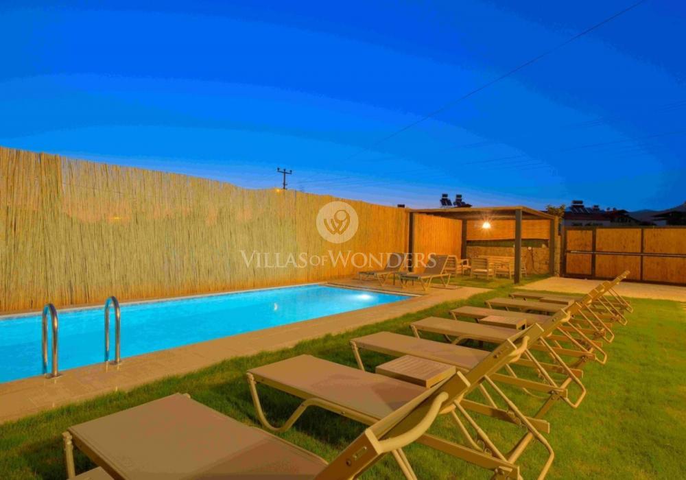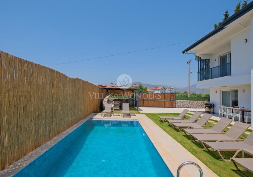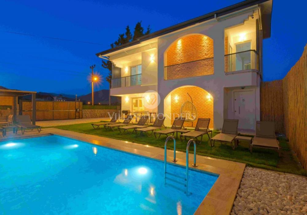 Unsere Villa liegt im Stadtteil Camii von Fethiye, bekannt für seine friedliche und natürliche Schönheit, und bietet Gästen, die einen ruhigen Urlaub inmitten der Natur verbringen möchten, die ideale Unterkunft. Die Villa besticht durch ihre moderne Architektur und großzügigen Wohnbereiche und wurde sorgfältig gestaltet, um Ihnen ein komfortables Urlaubserlebnis zu bieten.