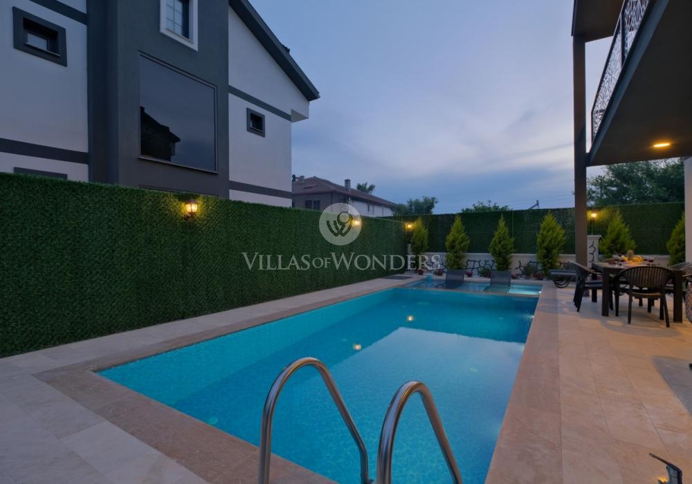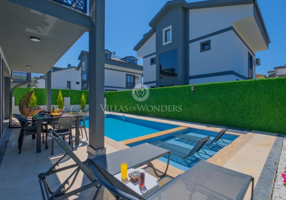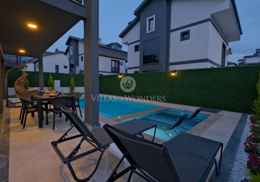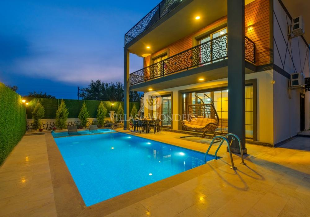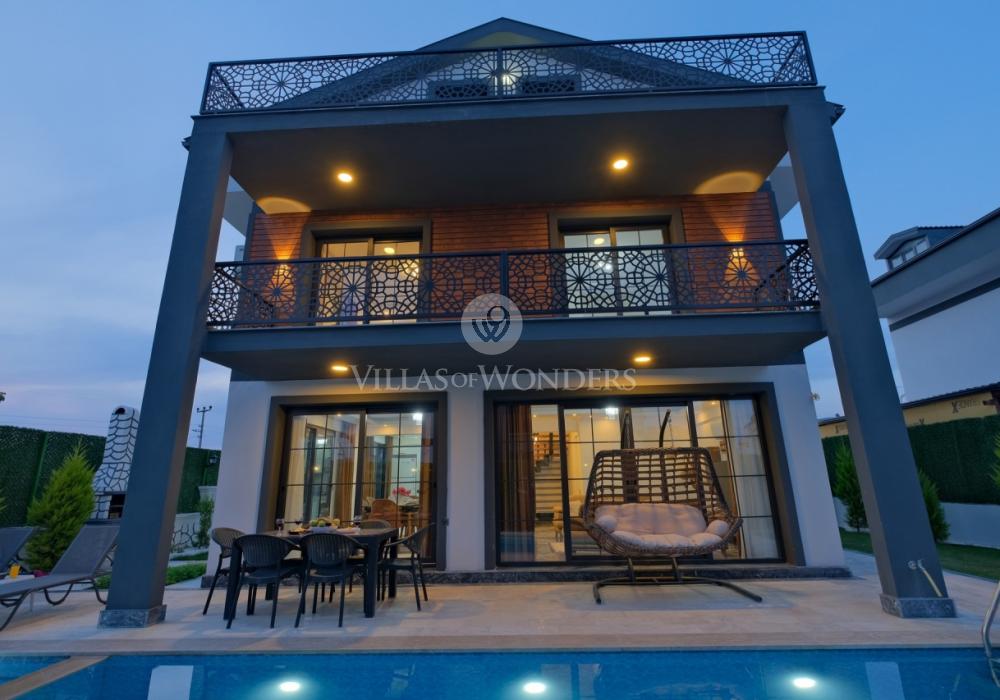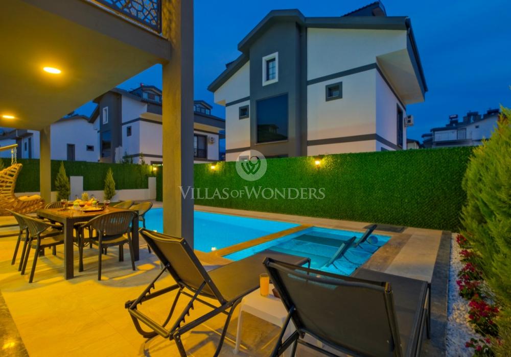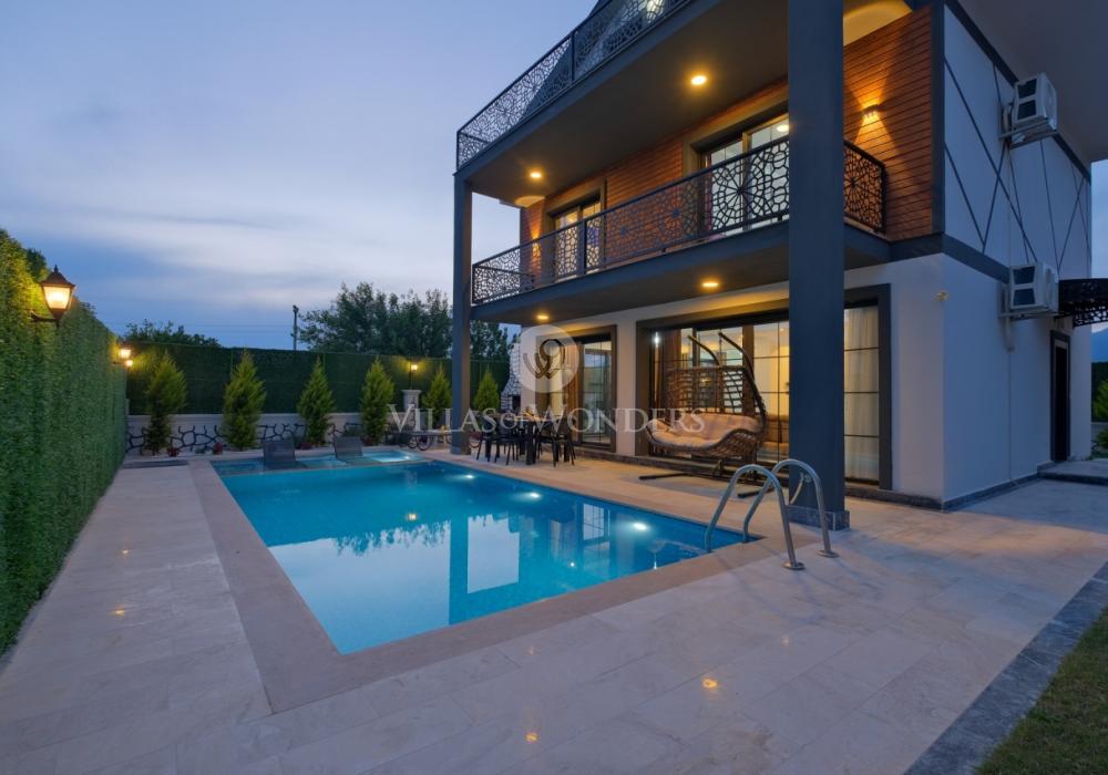 Die Villa DURU befindet sich in der ruhigen Gegend von Seydikemer in Fethiye und ist die ideale Wahl für große Gruppen, die einen entspannten, komfortablen Urlaub inmitten der Natur suchen. Mit Jacuzzi, Grillbereich und großem Garten bietet sie ein unvergessliches Urlaubserlebnis. Die Villa verfügt über 4 Schlafzimmer, 4 Badezimmer und bietet Platz für bis zu 8 Personen, was sie perfekt für große Familien oder Freundesgruppen macht. In einer ruhigen, naturnahen Umgebung sticht die Villa durch ihren sorgfältig gestalteten Garten, großzügige Innenräume und komfortorientierte Details hervor.