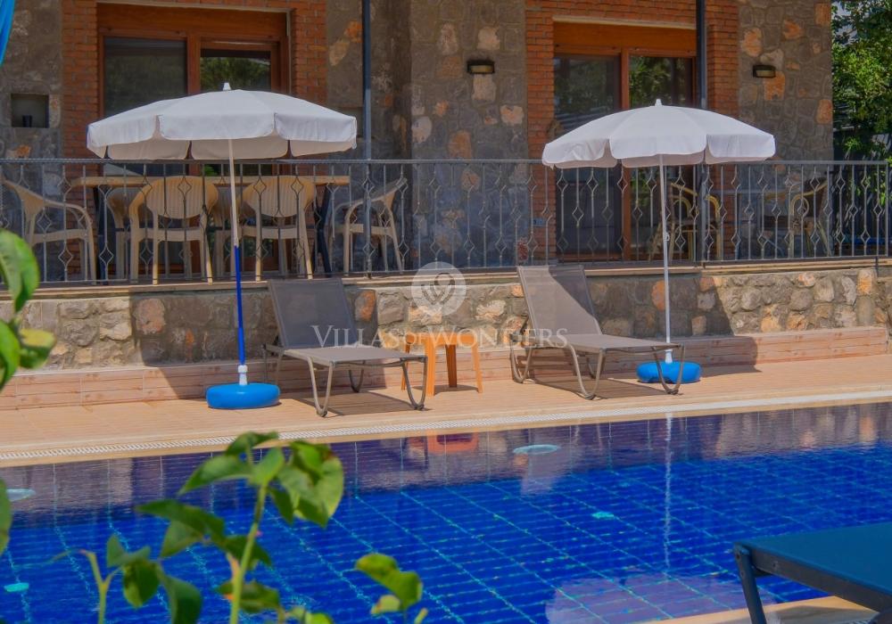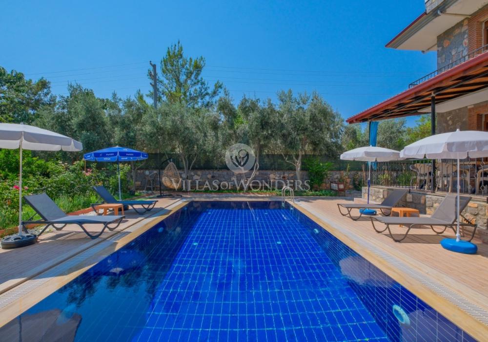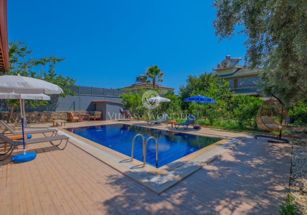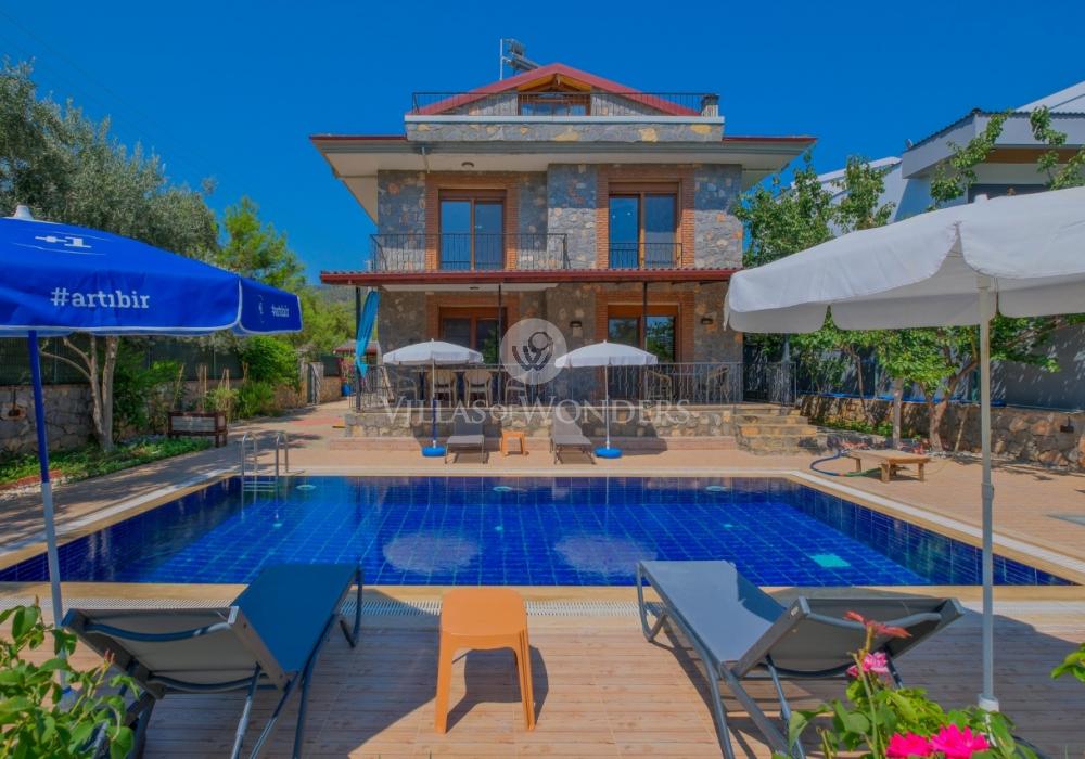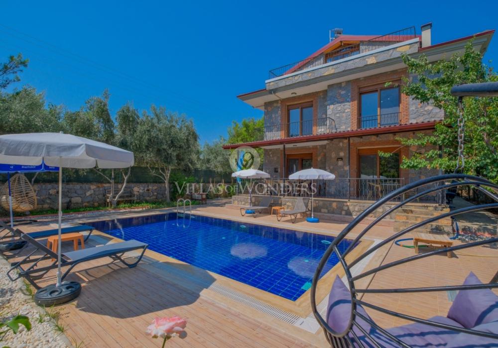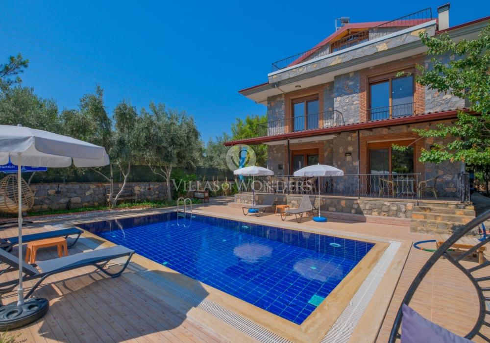 Die Villa im ruhigen Stadtteil Çiftlik in Fethiye überzeugt mit modernem Design und privatem Pool und ist ideal für große Familien oder Gruppen. Die Unterkunft bietet Platz für bis zu 8 Personen und verfügt über 3 Schlafzimmer und 3 Badezimmer.
