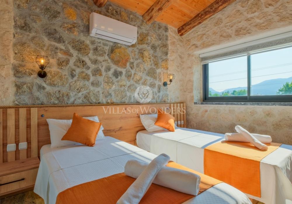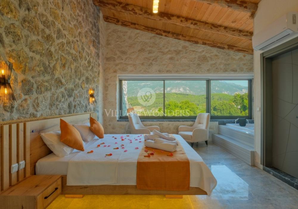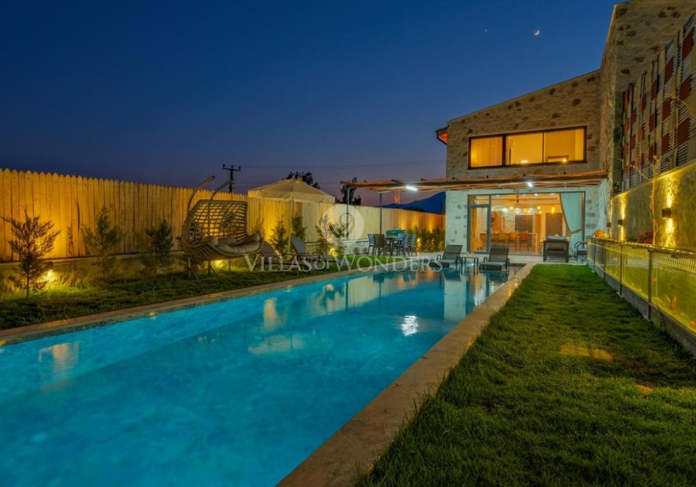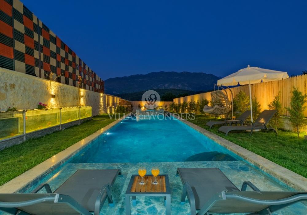 Situated in the peaceful and green Demirler area of Fethiye, Villa Faik Bey Konağı offers a private escape for friends or small families with its capacity for four people, two bedrooms, and two bathrooms. Although it is about 35 km from the sea, you can enjoy tranquility without stepping outside thanks to its natural views, garden, and private pool.
