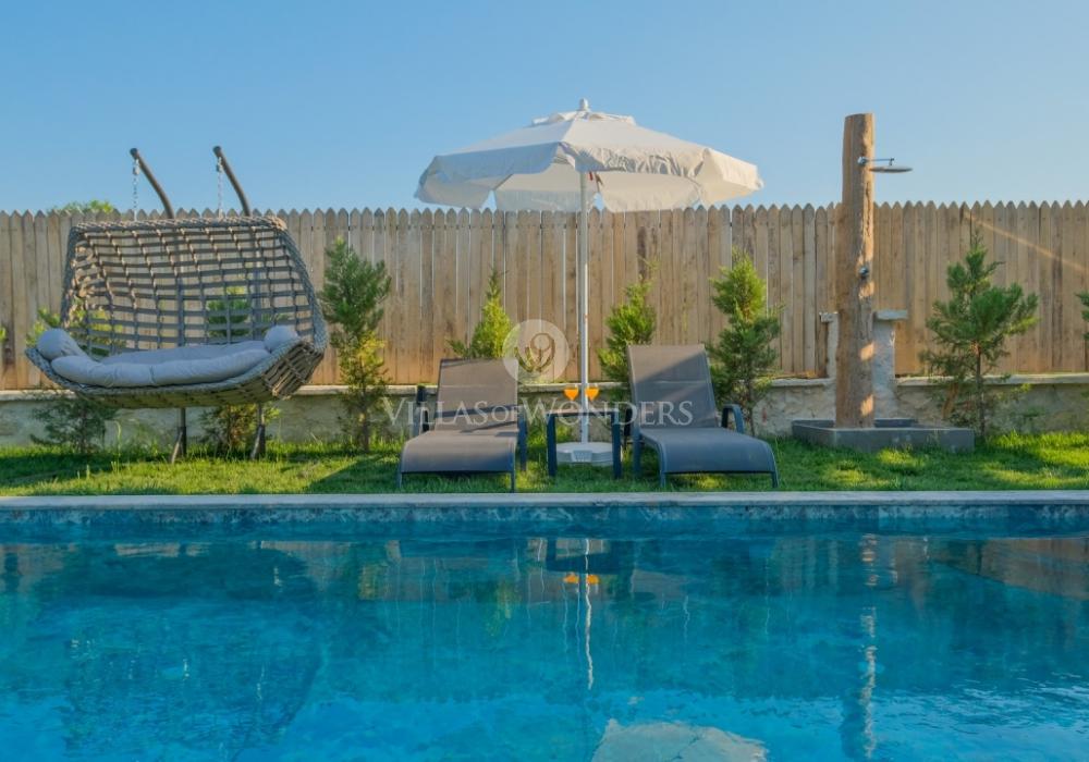Villa Faik Bey Konağı offers a pool that is entirely private. With dimensions of 12 meters by 3.5 meters, this pool, being secluded, preserves your privacy as well. The pool terrace is furnished with a barbecue area, a swing, and garden furniture — ideal for relaxing in the morning sun or in the cool of the evening. The garden integrates with nature, caressing the soul with misty morning light and the rhythm of peace at day’s end.