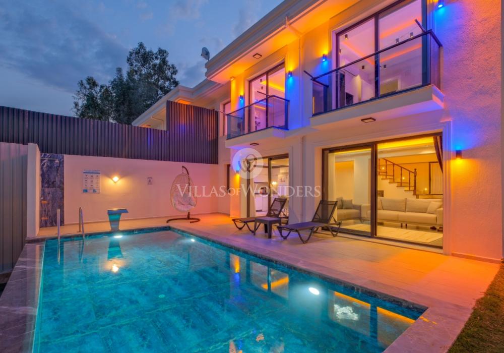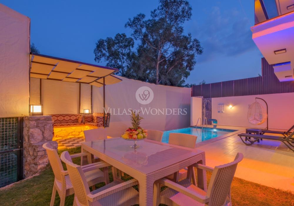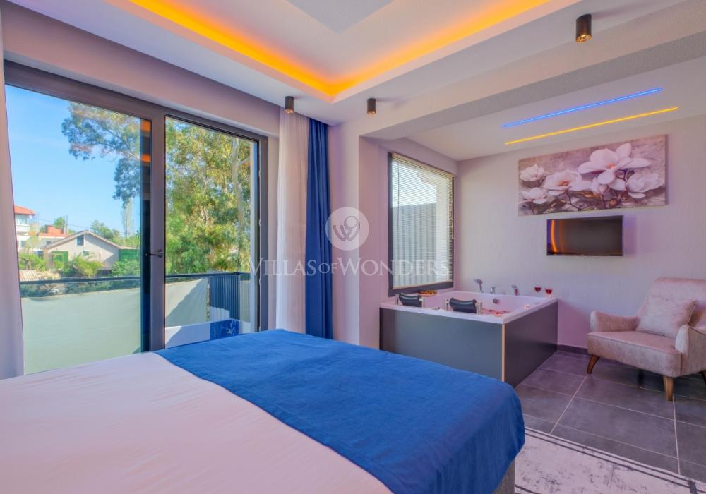 Villa Solo Leon 1 is located in the Eldirek area of Fethiye and offers you a peaceful and comfortable accommodation experience. With 2 bedrooms, our villa has a capacity for 4 guests and is an ideal choice for honeymoon couples and small families. Featuring spacious interiors and an elegant design, Villa Solo Leon 1 offers a delightful holiday with its nature-view location.