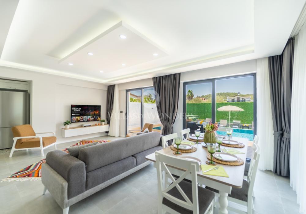 Villa Solo Polly 2 is a 250 m² luxury 3+1 private pool villa located in the Hisarönü area of Fethiye. With a capacity for 6 guests, it offers a comfortable and modern holiday experience.