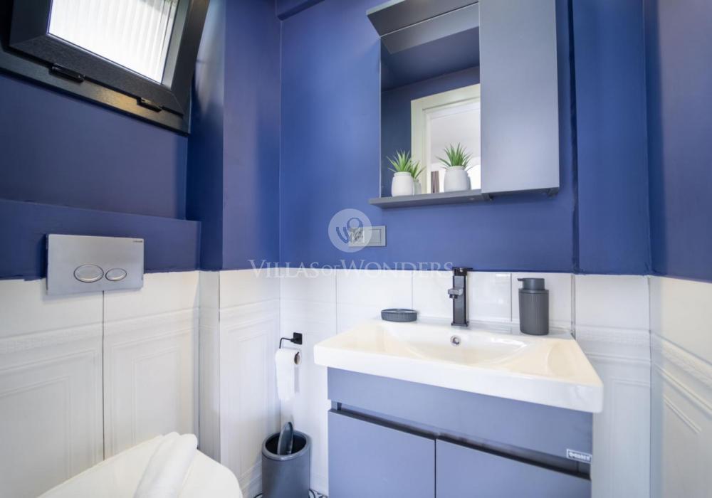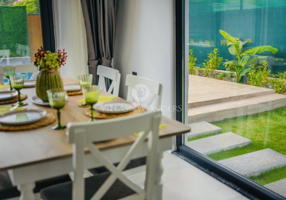 The villa features 3 bedrooms, 3 bathrooms, and air conditioning in all rooms. The spacious living room and fully equipped kitchen make it suitable for both short and long stays.
