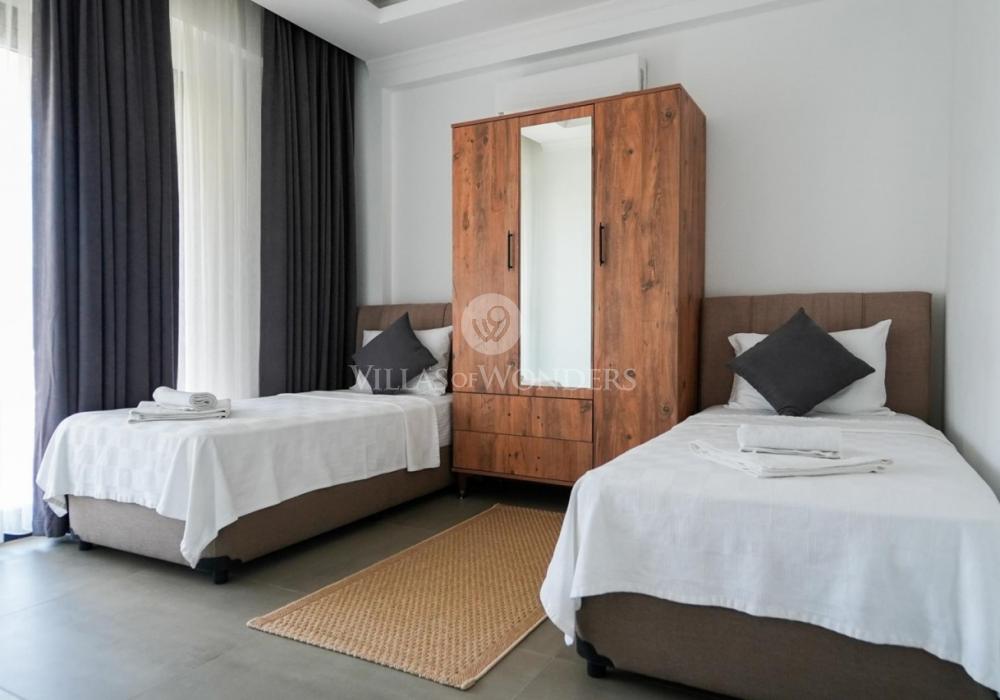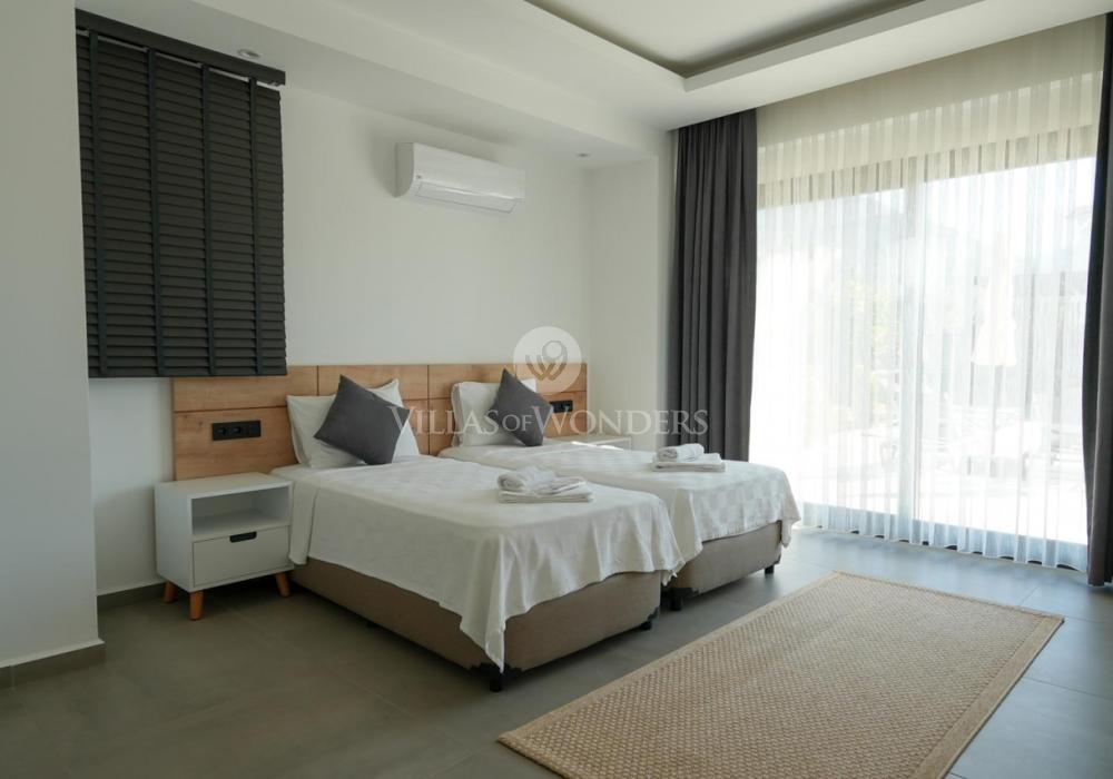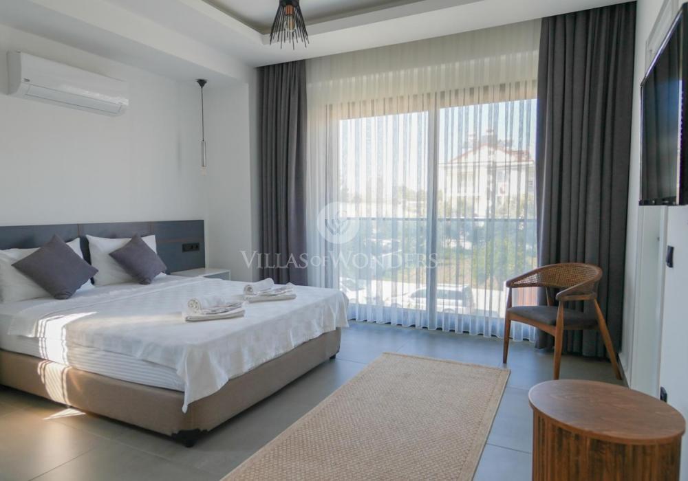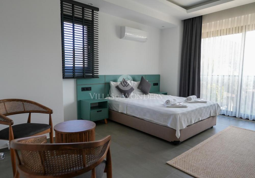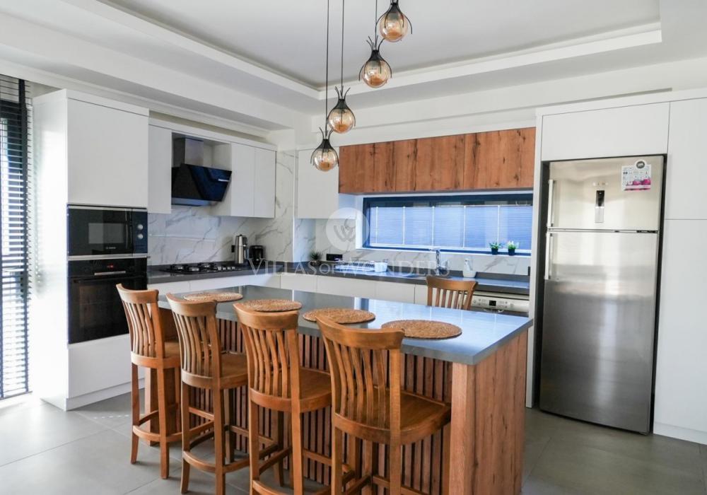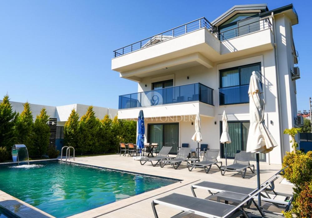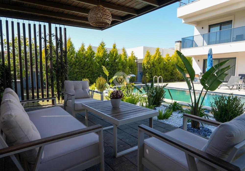 Our villa is a 2-storey property with balconies, offering spacious and functional living areas for a comfortable stay. With a 4+1 layout and a capacity of 8 guests, it is especially ideal for large families.