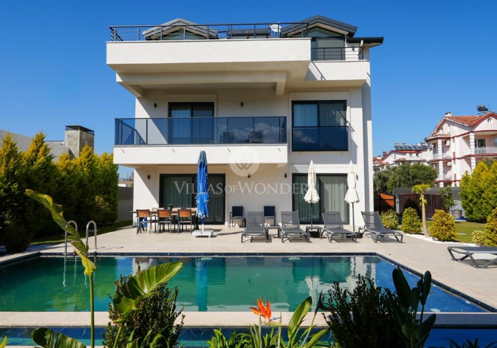 Villa Solo Seginus is located in Pazaryeri Neighborhood of Fethiye, Muğla, in a central yet calm and family-friendly area. Situated on Şehit Sabri Acar Street, the villa offers easy access to transportation as well as nearby markets, restaurants, and daily necessities, making it highly convenient for families.