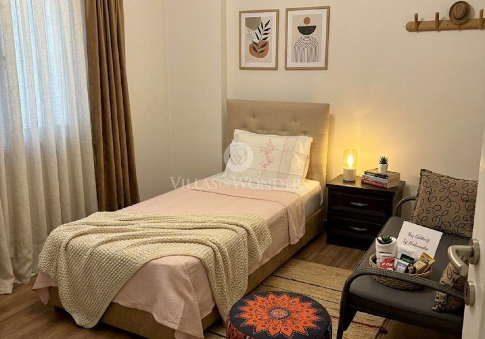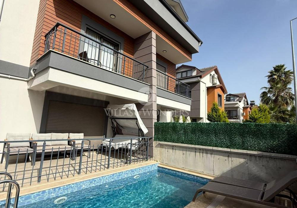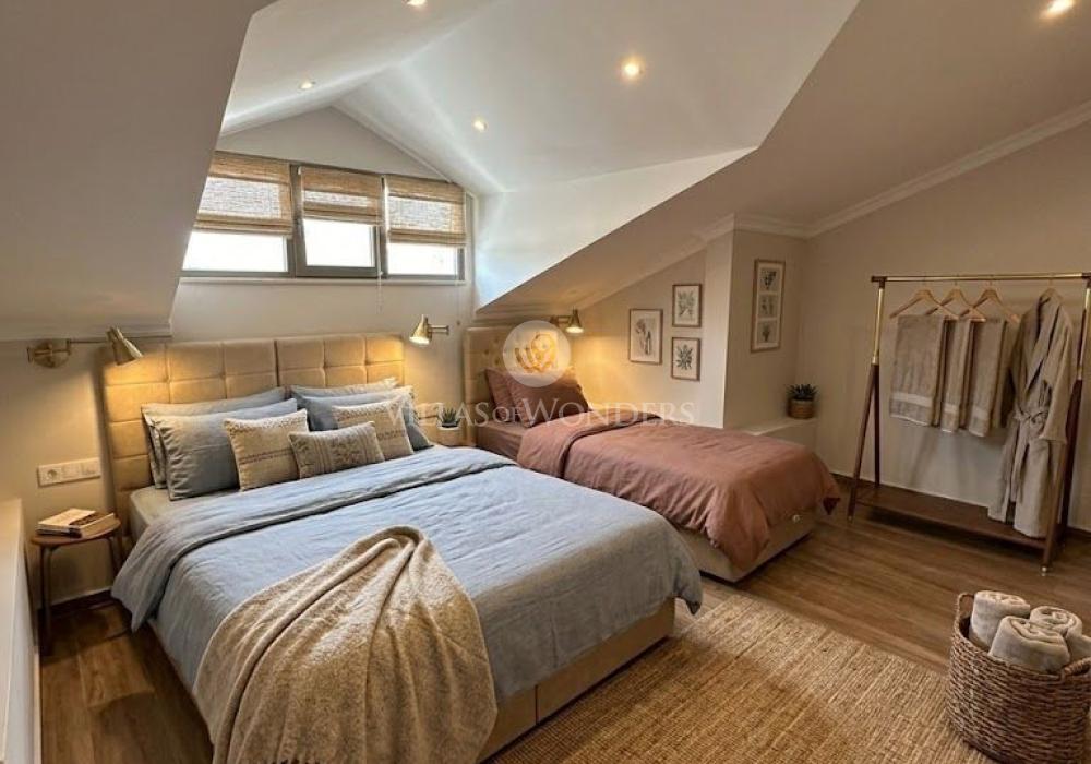 Villa Solo Valora is a luxurious holiday villa located in the Çalış area of Fethiye, within walking distance to the beach and the town center. With 4 bedrooms and a capacity of up to 8 guests, it is an ideal choice for large families and groups of friends, especially those who prefer a central location and do not wish to use a car. Each of the 4 bedrooms has its own private bathroom & WC, offering maximum comfort and privacy.