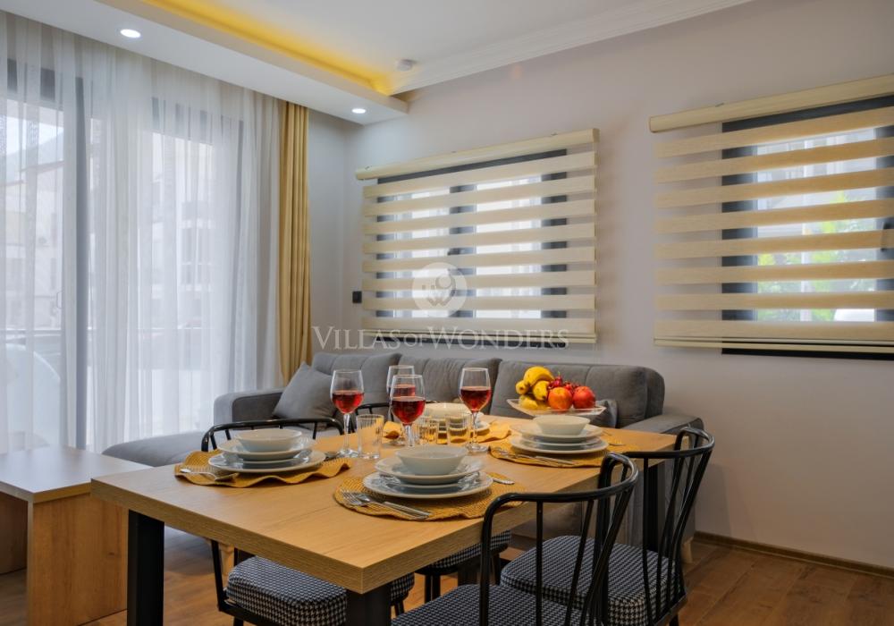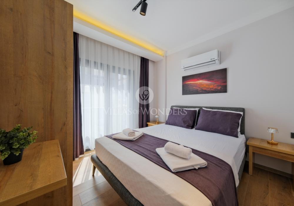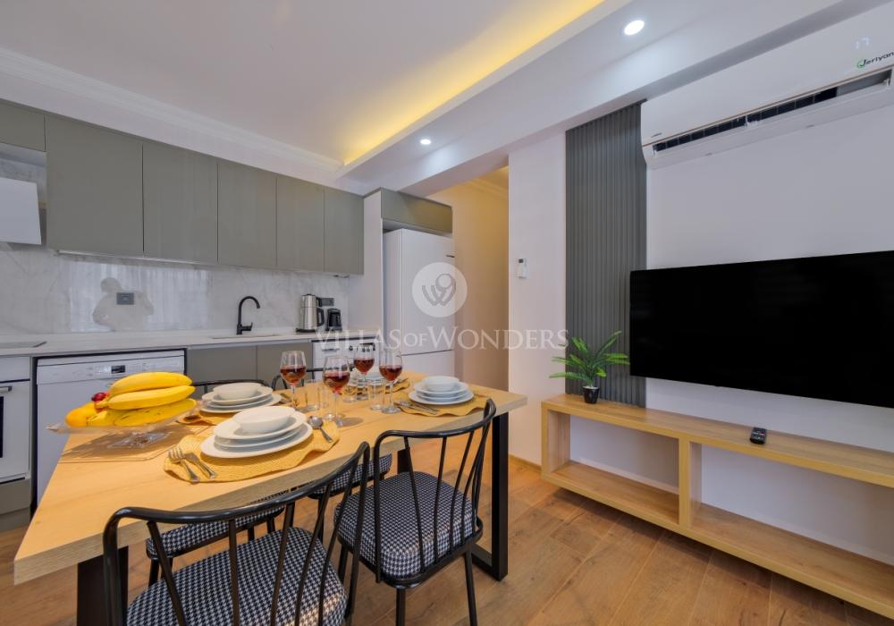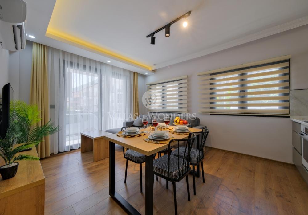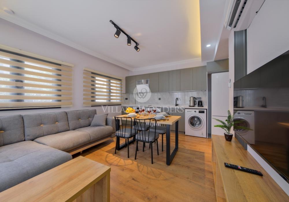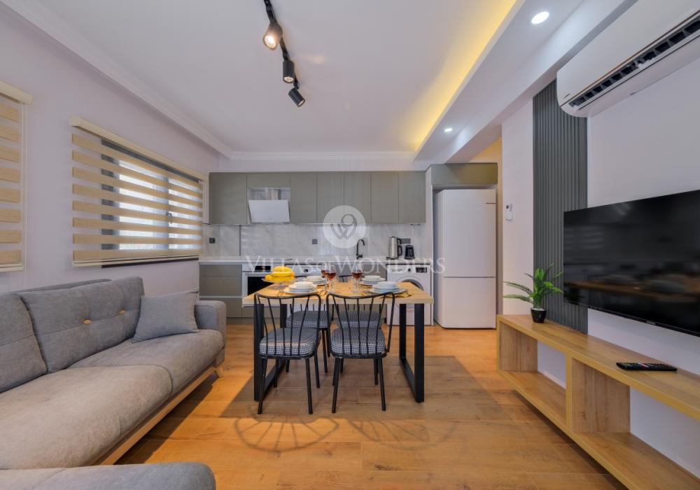Ubicado en el centro de Fethiye, Solo Apart Light1 combina la vida urbana con un ambiente tranquilo rodeado de naturaleza. Este apartamento 1+1 es ideal para quienes buscan alquiler vacacional en Fethiye, con capacidad para 4 personas.