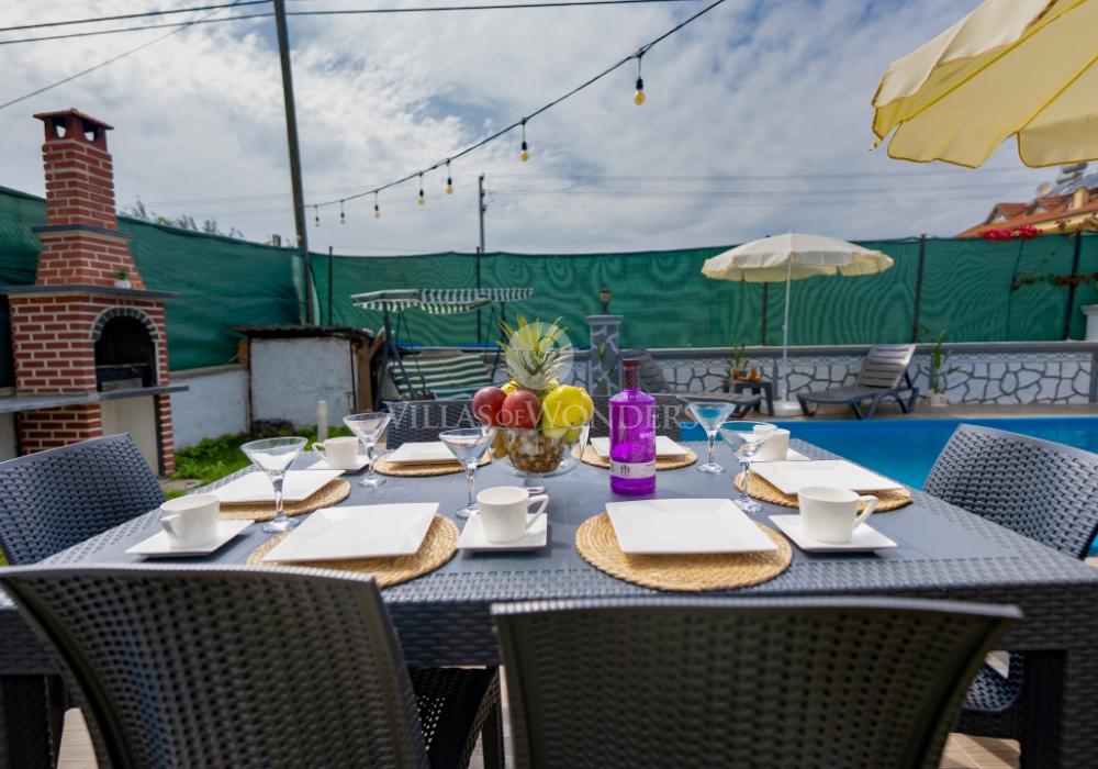 Extras: Se incluyen toallas y sábanas. 5 tumbonas, cojines y 2 sombrillas disponibles.