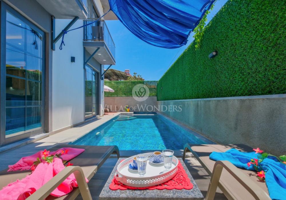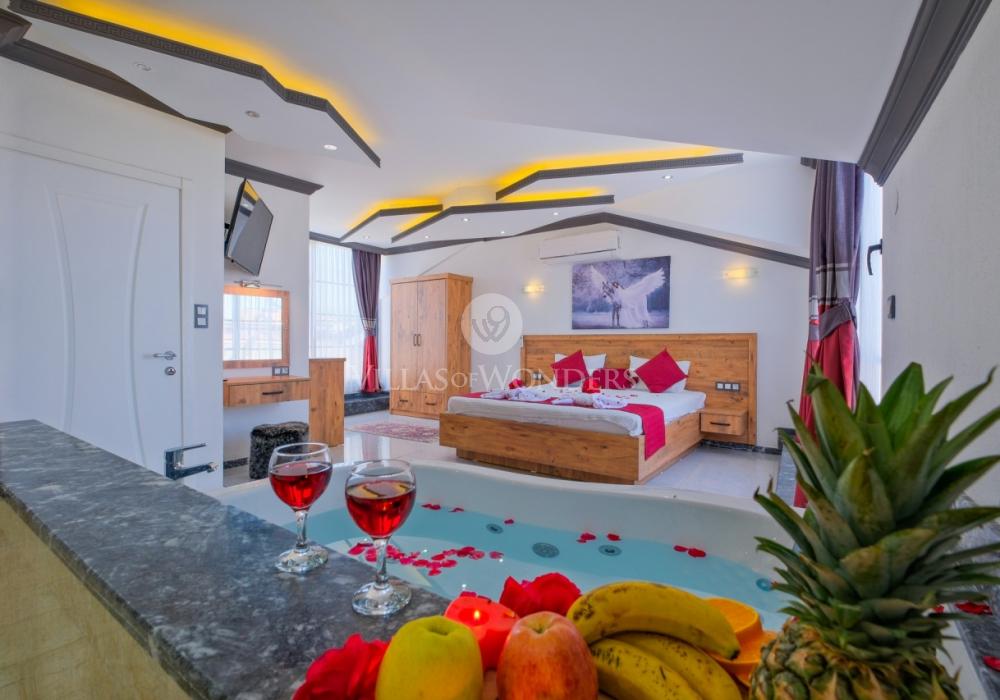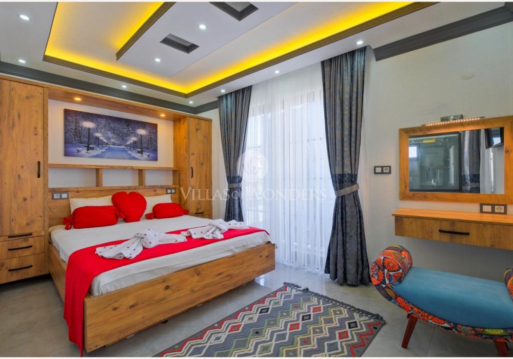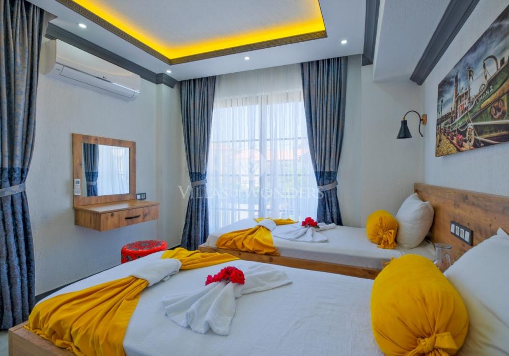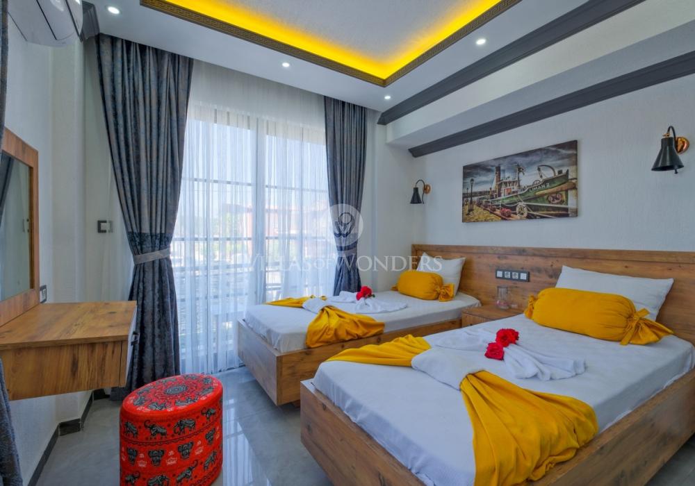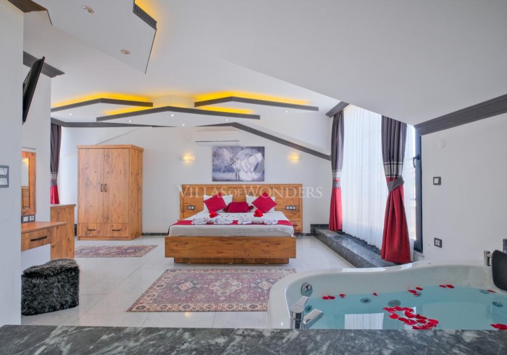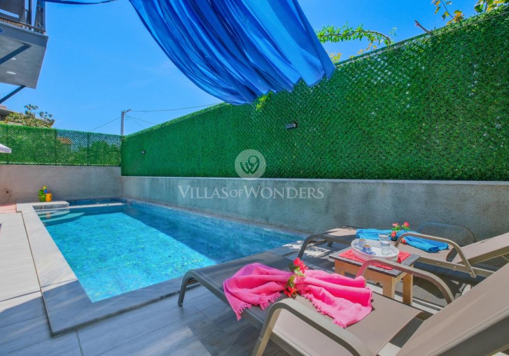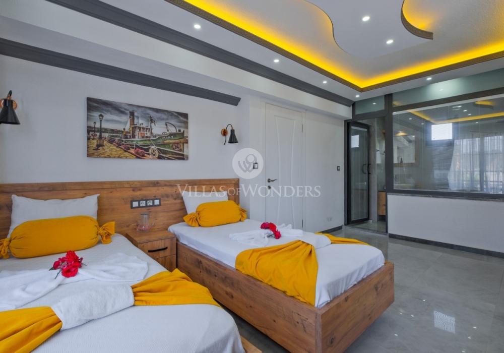 Con tres dormitorios y tres baños, Villa Kasaba ofrece alojamiento espacioso para seis personas, ideal especialmente para familias numerosas y grupos de amigos. La habitación principal incluye jacuzzi privado, hammam y sauna, invitando a la relajación física y mental. Las otras habitaciones cuentan con camas dobles e individuales, aire acondicionado, armarios y una distribución cómoda.