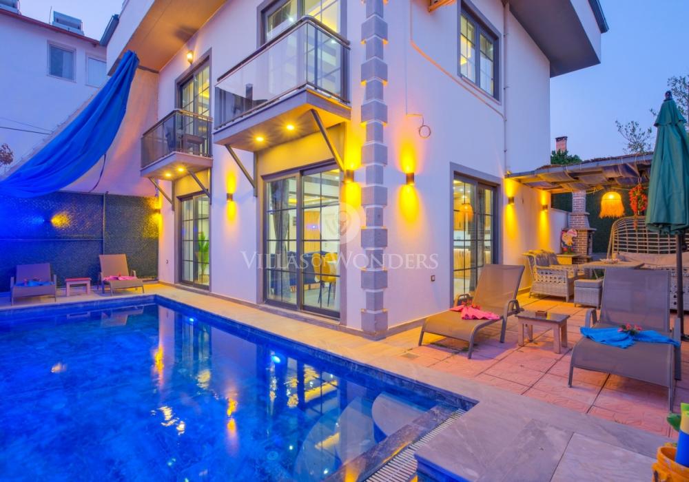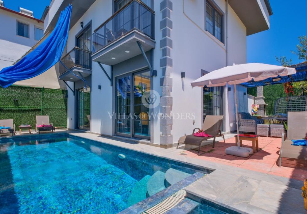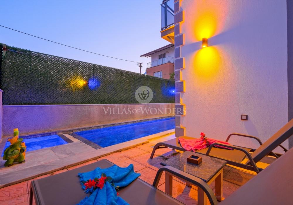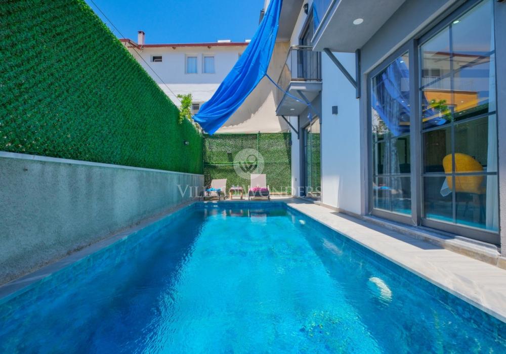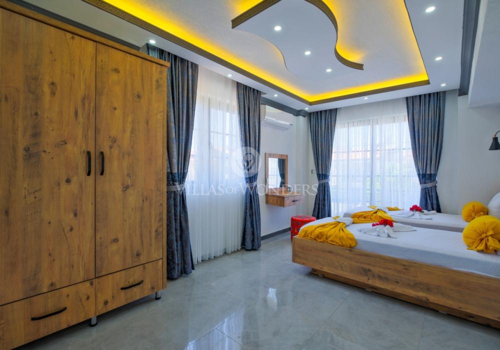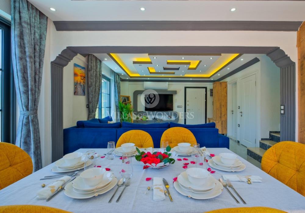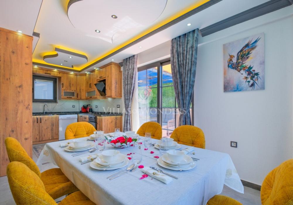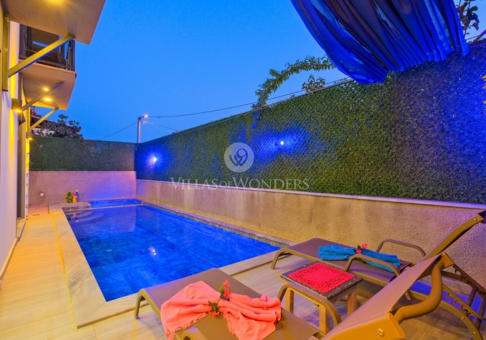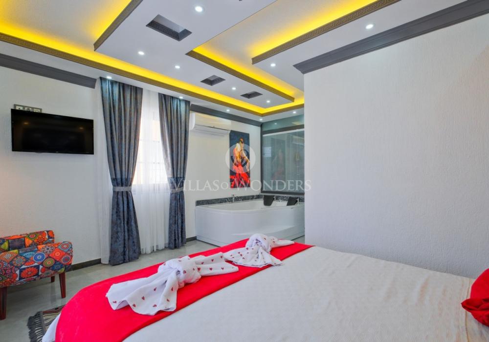Con tres dormitorios y tres baños, Villa Kasaba ofrece alojamiento espacioso para seis personas, ideal especialmente para familias numerosas y grupos de amigos. La habitación principal incluye jacuzzi privado, hammam y sauna, invitando a la relajación física y mental. Las otras habitaciones cuentan con camas dobles e individuales, aire acondicionado, armarios y una distribución cómoda.