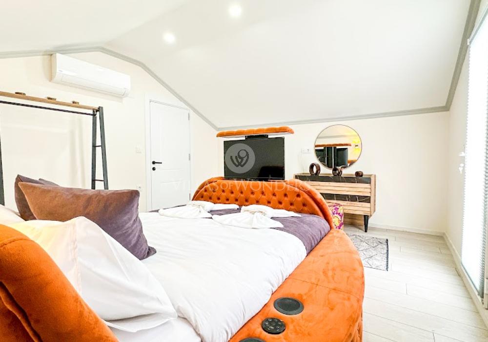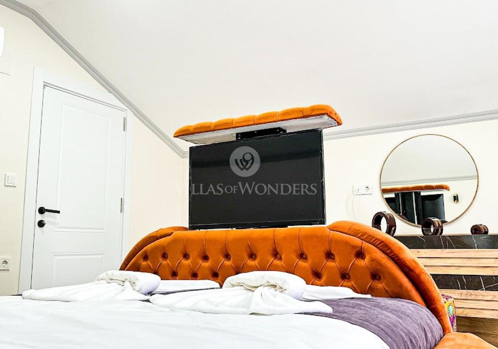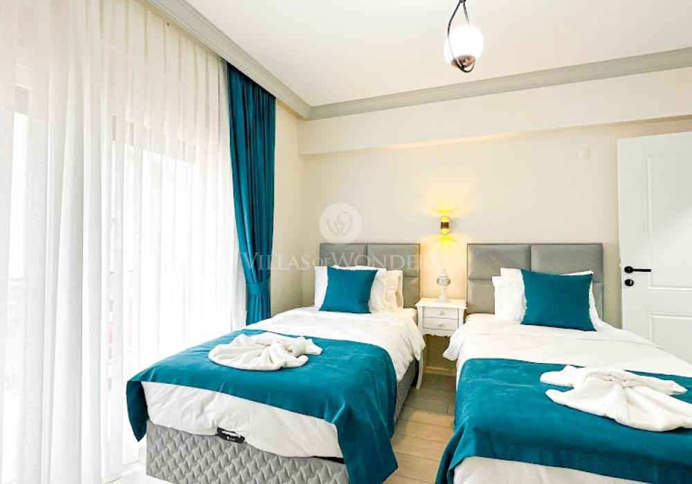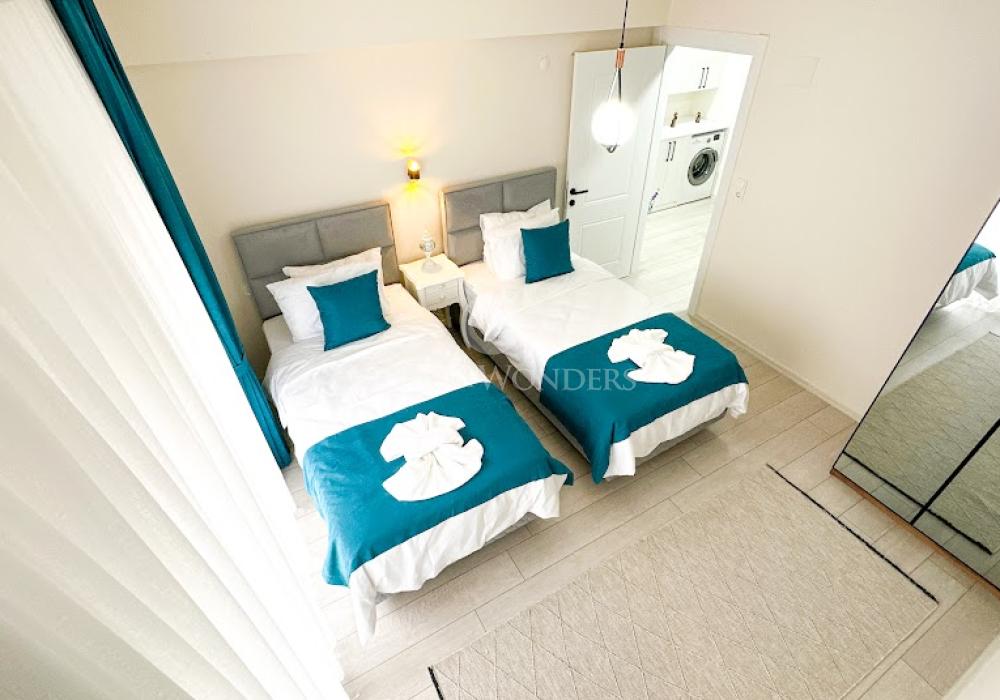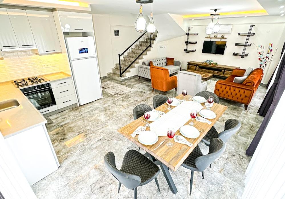 La villa se encuentra en la zona de Çalış, conocida como uno de los mejores lugares para disfrutar del atardecer. Esta región es famosa por su brisa fresca de verano y por ser el hábitat natural de las tortugas Caretta Caretta. Con restaurantes, bares, tiendas y transporte, es uno de los destinos más populares de Fethiye. Además, está cerca de la playa de Çalış.