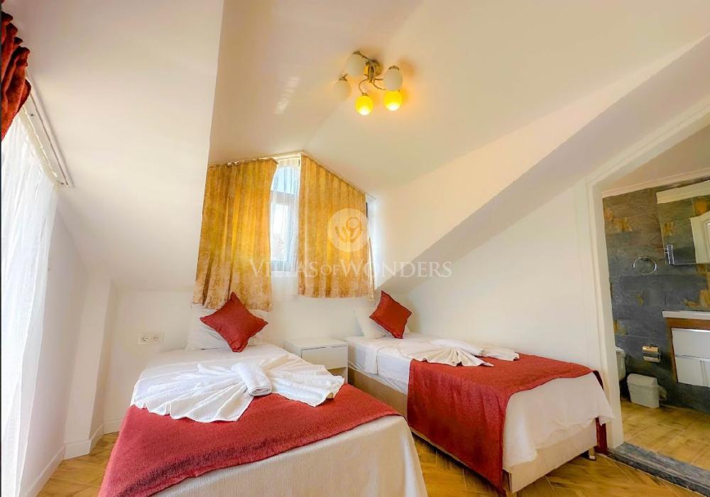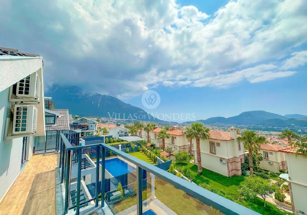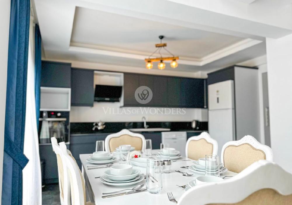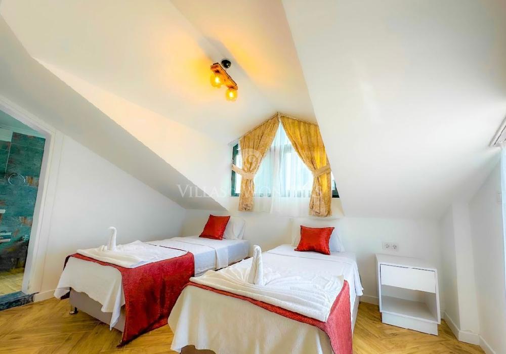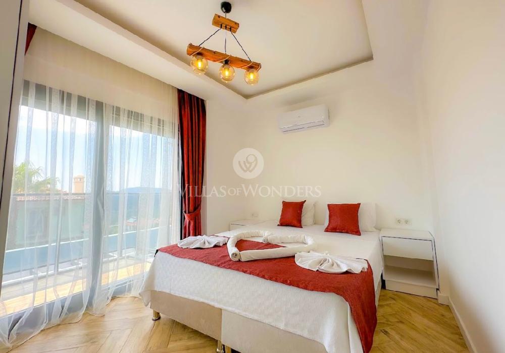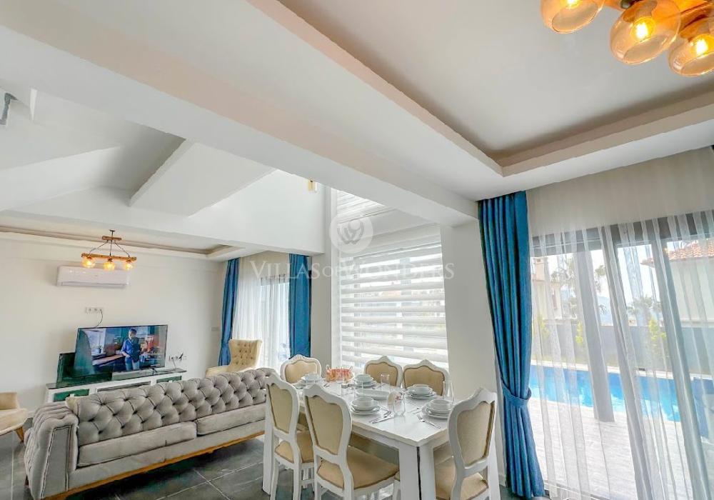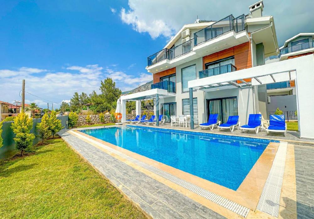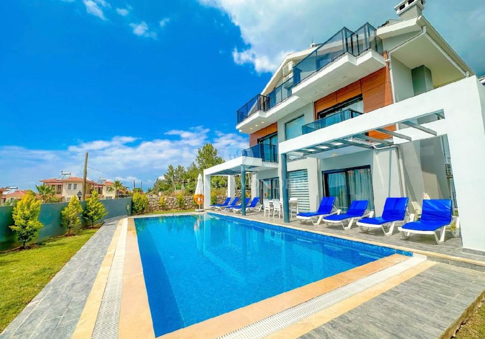 Cerca de la playa de Ölüdeniz, destaca por su arquitectura moderna y elegante diseño interior. Cuenta con un amplio salón con acceso a la terraza de la piscina y una cocina totalmente equipada. En el exterior hay tumbonas, zona de estar, columpio y barbacoa.