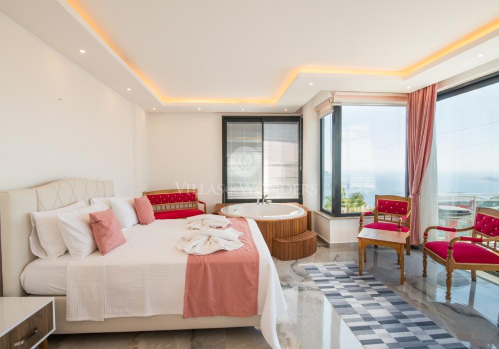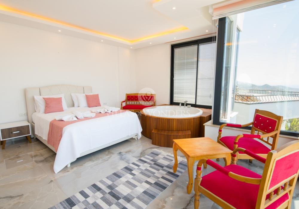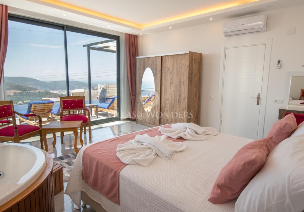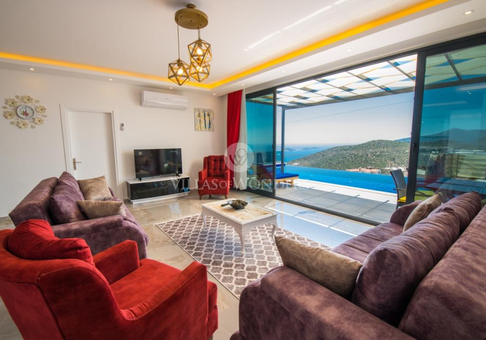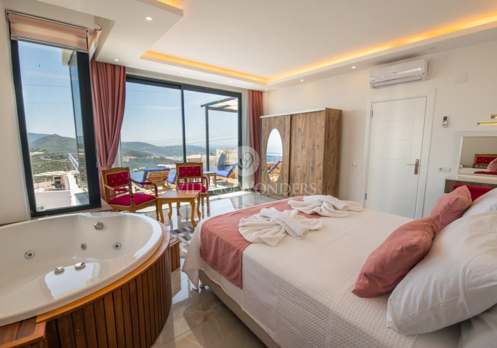 Notre luxueuse villa de vacances avec vue panoramique, qui a été achevée en juillet 2019, est une villa idéale pour nos couples en lune de miel et nos petites familles. Avec l'utilisation de meubles et d'électroménagers de qualité dans notre villa de luxe pour 5 personnes, aucune dépense n'a été épargnée pour le confort de nos précieux invités. Notre villa de vacances, située dans la zone avec la plus belle vue de Kalkan, symbole du silence, est à 6-7 minutes en voiture du centre de Kalkan. Vous pouvez louer notre villa, qui ajoutera de la couleur à vos vacances avec son jacuzzi privé dans la chambre, sa vue magnifique et son design luxueux, et vivre des vacances inoubliables.