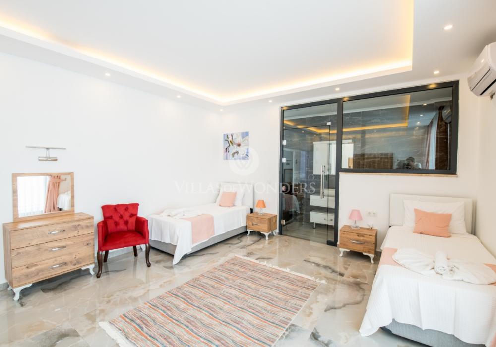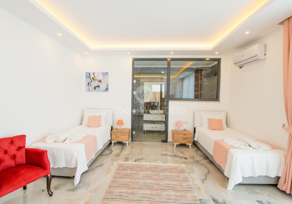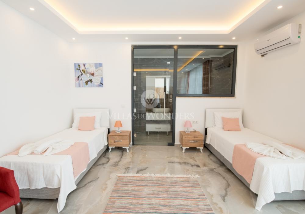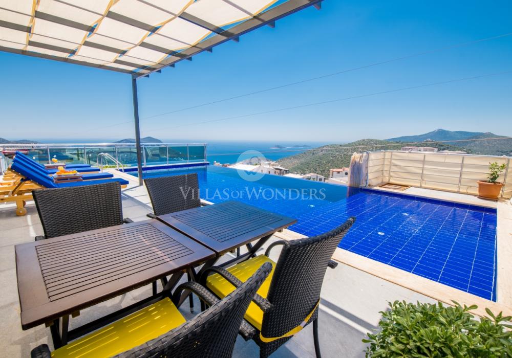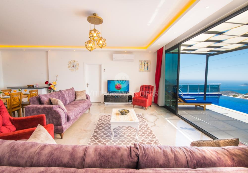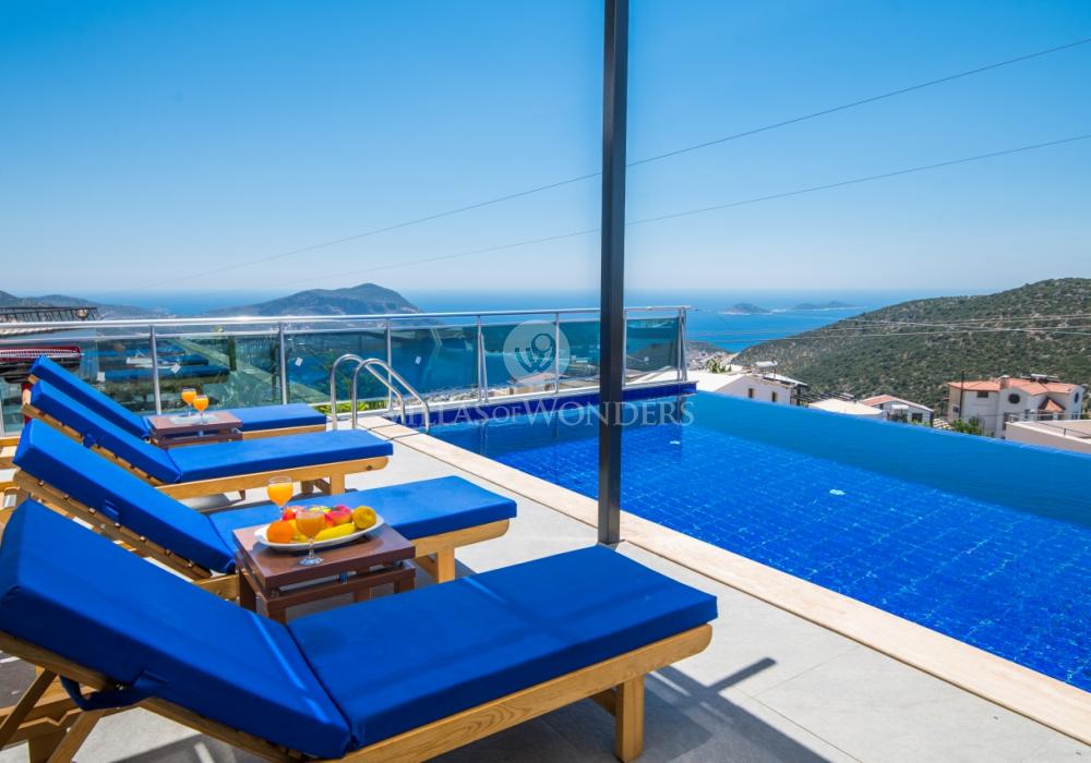 Notre luxueuse villa de vacances avec vue panoramique, qui a été achevée en juillet 2019, est une villa idéale pour nos couples en lune de miel et nos petites familles. Avec l'utilisation de meubles et d'électroménagers de qualité dans notre villa de luxe pour 5 personnes, aucune dépense n'a été épargnée pour le confort de nos précieux invités. Notre villa de vacances, située dans la zone avec la plus belle vue de Kalkan, symbole du silence, est à 6-7 minutes en voiture du centre de Kalkan. Vous pouvez louer notre villa, qui ajoutera de la couleur à vos vacances avec son jacuzzi privé dans la chambre, sa vue magnifique et son design luxueux, et vivre des vacances inoubliables.