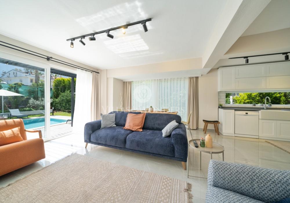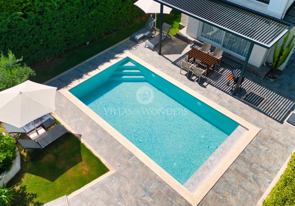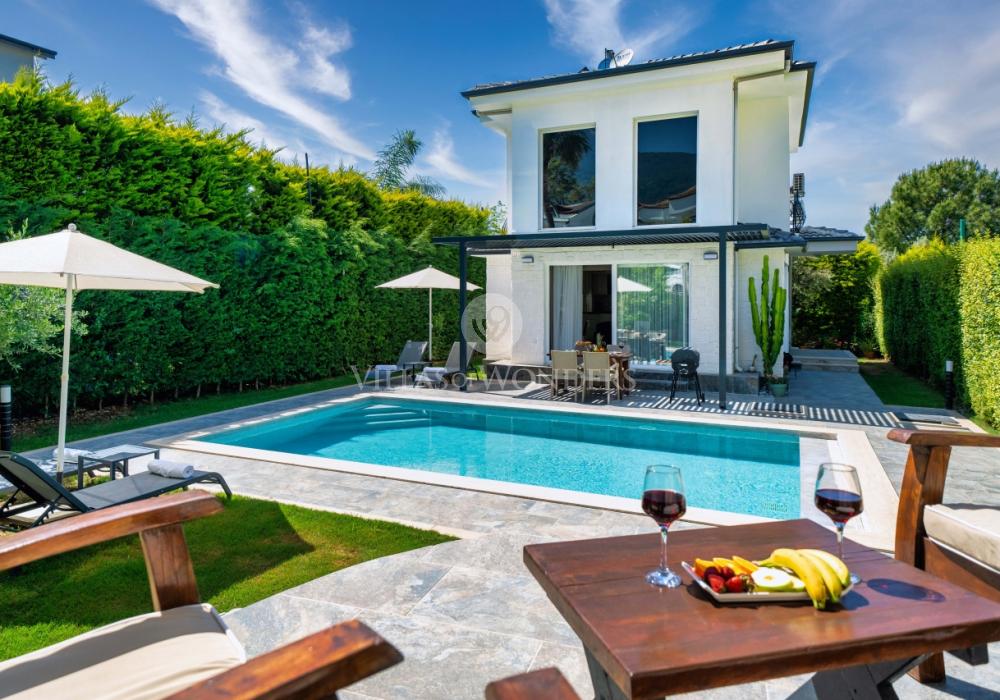 Avec sa piscine privée protégée, elle est idéale pour les familles et les couples en lune de miel. Elle peut accueillir 4 personnes avec 2 chambres, une cuisine équipée, un salon spacieux et une terrasse ensoleillée