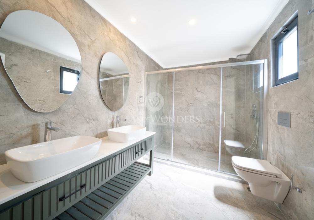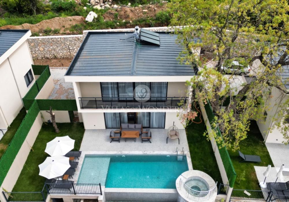 Achevée en 2023, la villa fait partie d’un projet privé comprenant 12 villas mitoyennes de type 1+1 et 2+1, toutes conçues selon le même concept. Elle est idéale pour les couples en lune de miel et les petites familles. Son design moderne, son mobilier de qualité et son équipement complet garantissent un séjour confortable.