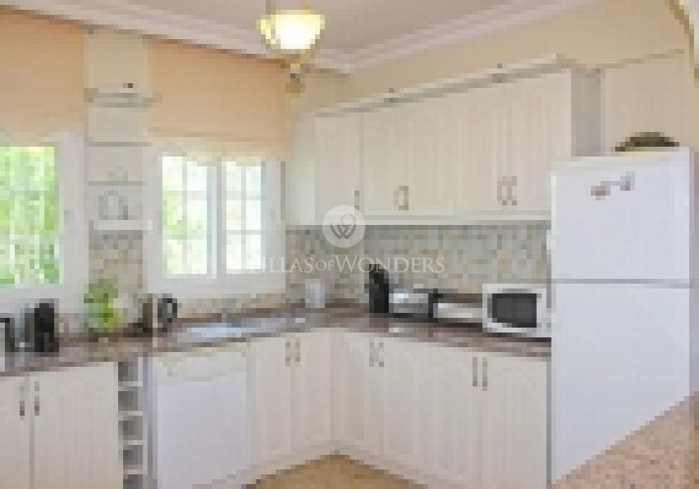 La cuisine est entièrement équipée avec un réfrigérateur, un four, une plaque de cuisson, un micro-ondes et tous les ustensiles nécessaires. Vous pouvez préparer vos repas vous-même et les déguster à l’intérieur ou sur la terrasse, en famille.