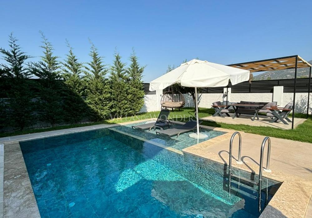 Villa Solo Elite Hide est une villa de vacances moderne et élégante située dans le quartier de Karaçulha à Fethiye. Avec une piscine privée entièrement protégée et 130 m² de surface habitable, la villa peut accueillir jusqu’à 6 personnes avec 3 chambres et 3 salles de bains, ce qui en fait un choix idéal pour les familles nombreuses et les groupes d’amis.