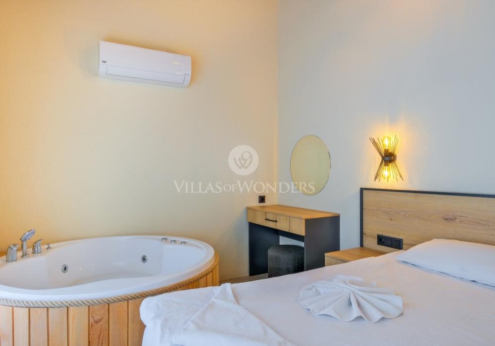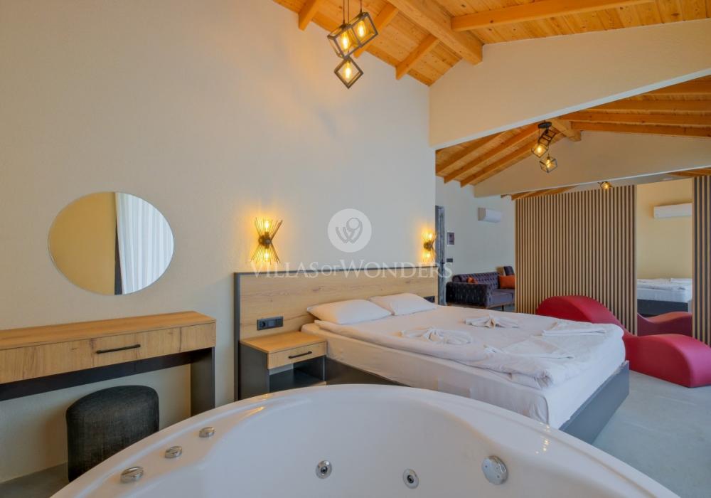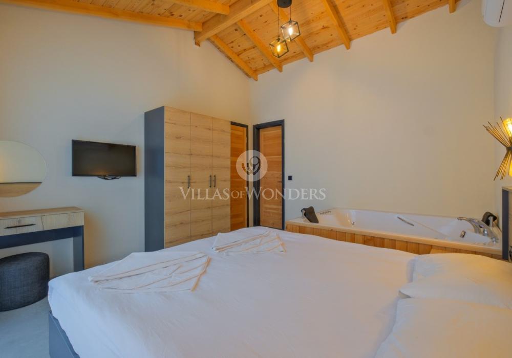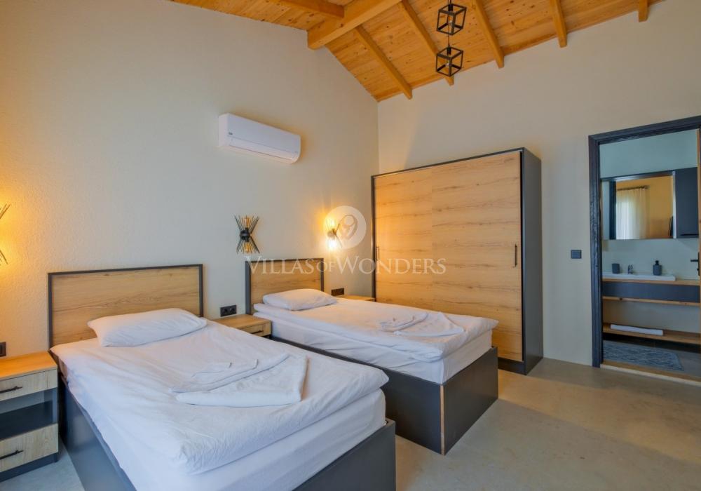 Виллы имеют 2 спальни и могут разместить до 6 человек. Просторная гостиная, кухня открытого типа, современная ванная комната и большие стеклянные двери, ведущие на веранду, создают ощущение свободы и света в каждом моменте.