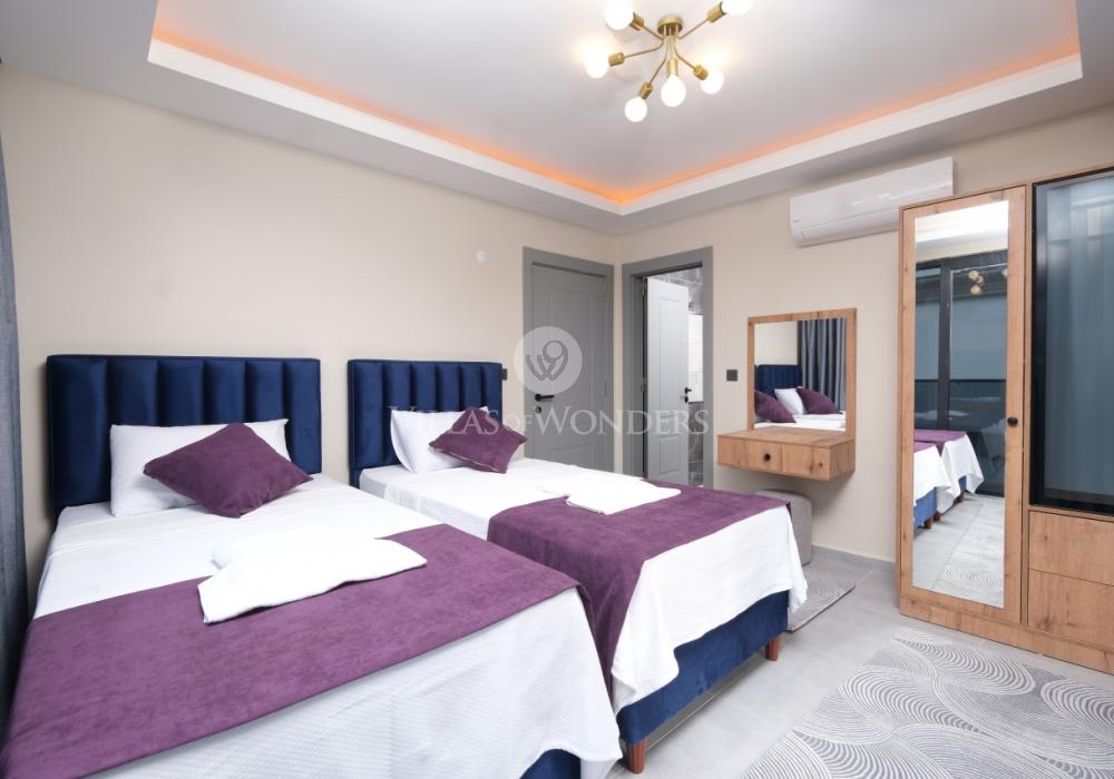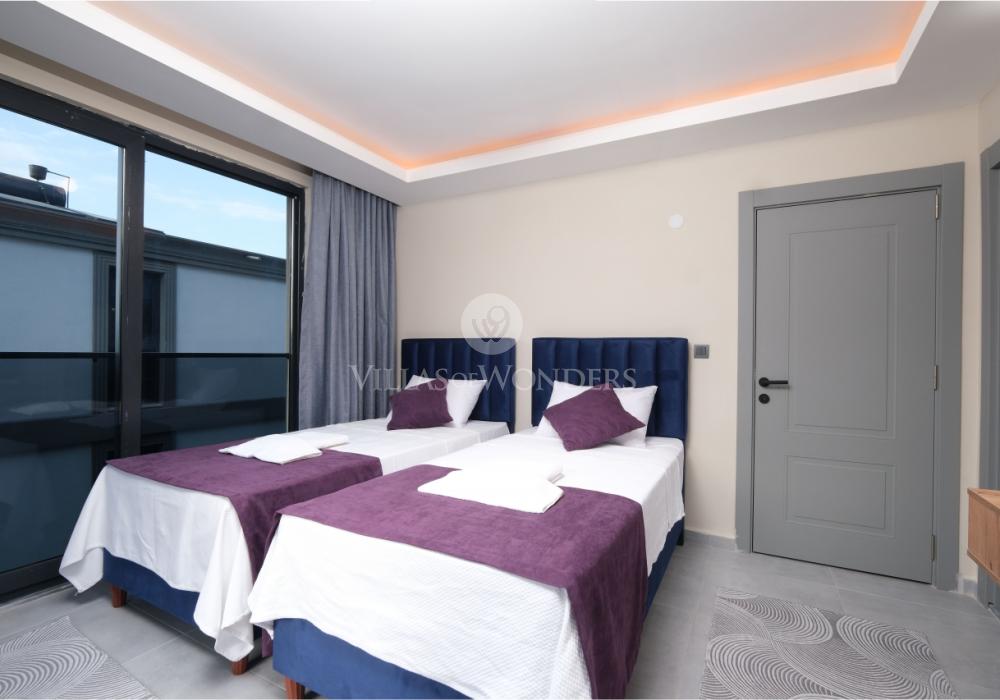 Расположенная в центре Фетхие, вилла Solo Villa Deniz — стильная и комфортная вилла с 3 спальнями, рассчитанная на 6 гостей. Идеально подходит для больших семей и групп друзей, вилла предлагает спокойный отдых с частным бассейном, продуманными жилыми зонами и просторной гостиной.