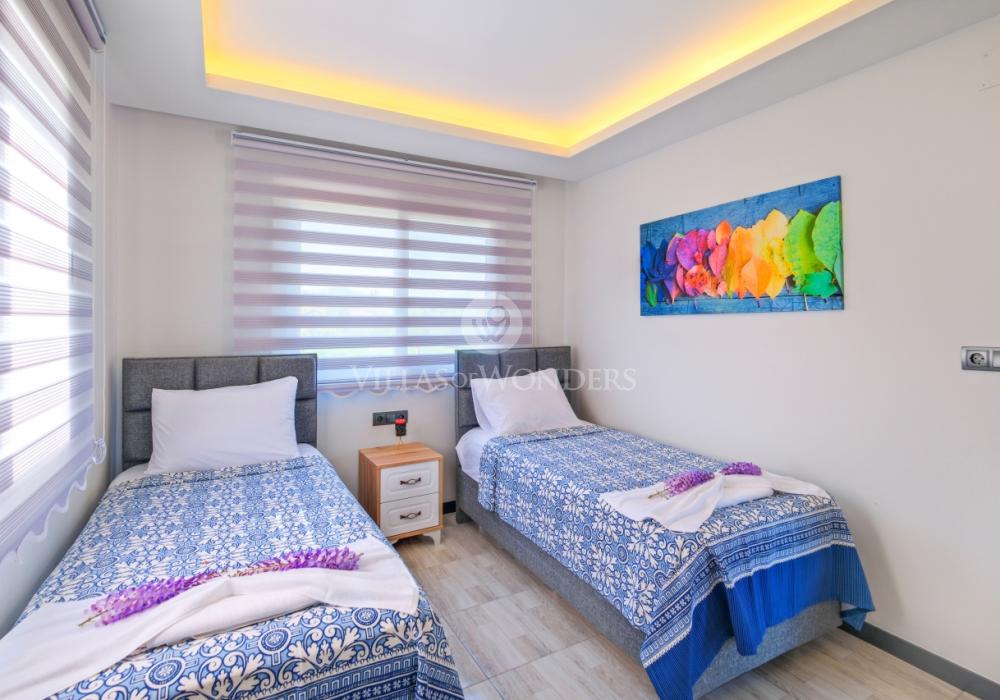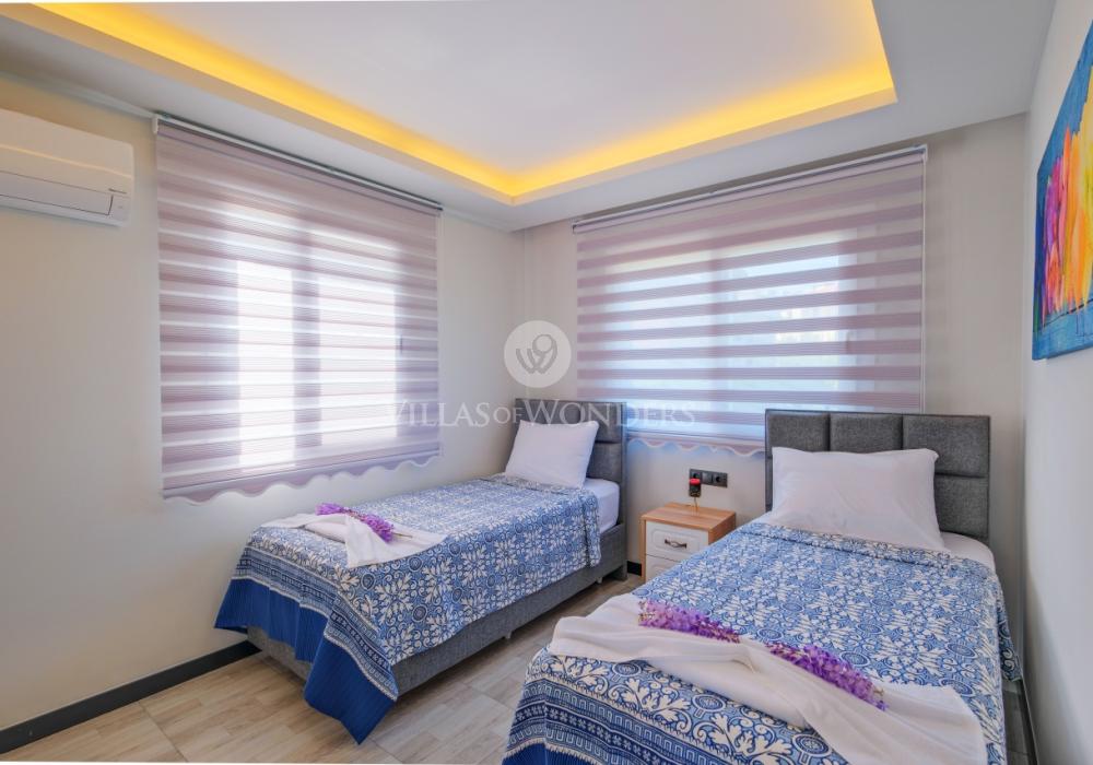 2-ya spal'nya: 2 odnospal'nyye krovati, konditsioner, prikrovatnyy stolik i shkaf.