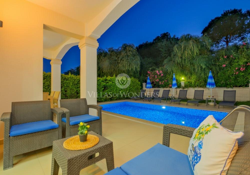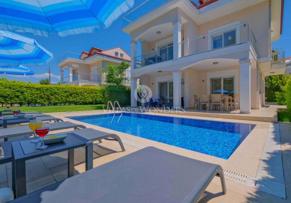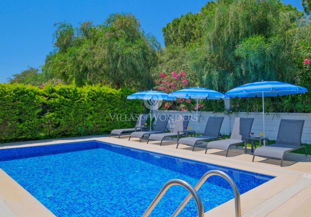 Fethiye’nin Çalış bölgesinde yer alan Villa Abdullah, konfor ve lüksü bir arada sunan özel havuzlu bir villadır.Villa, dört yatak odası ve dört banyosu ile 8 kişilik konaklama kapasitesi sağlar.Modern tasarıma sahip iç mekanında tam donanımlı bir mutfak, klima ve kablosuz internet mevcuttur.Geniş ve ferah salonu, aileniz veya arkadaş grubunuzla keyifli vakit geçirmenize imkân tanır.Bahçesinde özel havuz, şezlonglar ve veranda ile açık hava keyfi sunulmaktadır.Çalış Plajı’na sadece 1.5 km mesafede olması, deniz ve güneş keyfini kolaylaştırır.Villada ayrıca TV, uydu alıcı ve rahat oturma alanları gibi modern olanaklar yer alır.Aileler, balayı çiftleri veya arkadaş grupları için ideal bir tatil seçeneğidir.
