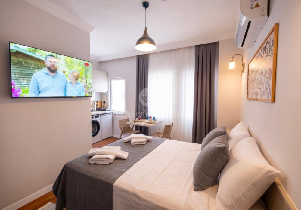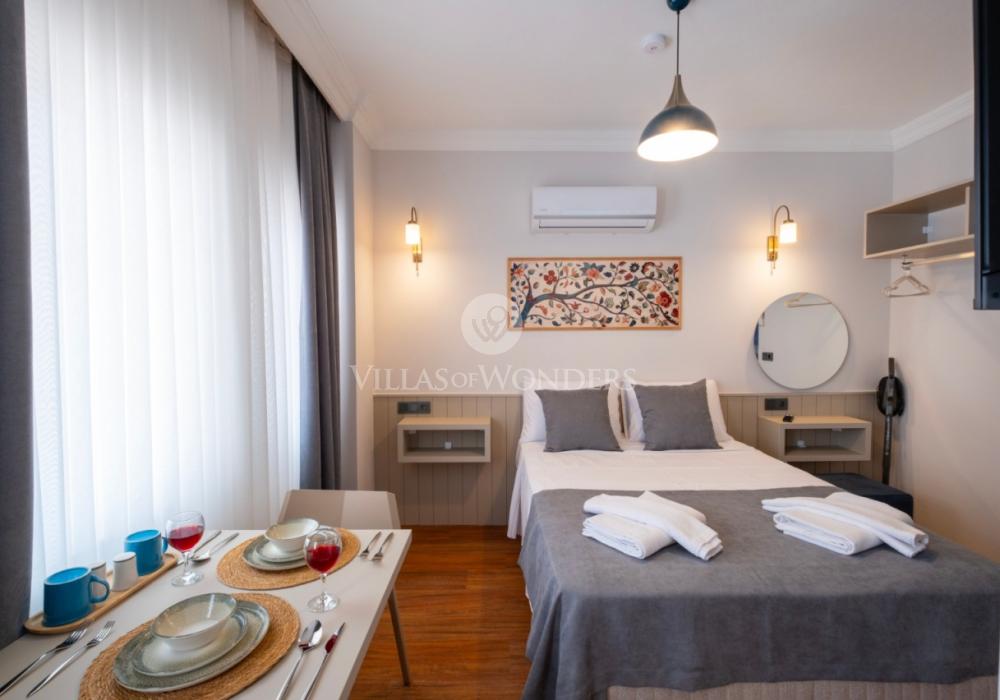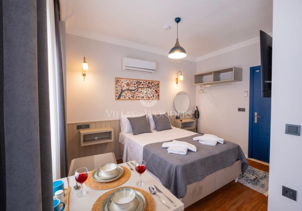 Şehir merkezine oldukça yakın konumda bulunan bu şirin stüdyo daire, 2 kişilik konaklama kapasitesi ile çiftler veya tek başına tatil yapmak isteyenler için ideal bir seçenek sunuyor. Çevresinde çok sayıda restoran, kafe ve diğer sosyal alanlar bulunan daire, hem dinlenmek hem de bölgenin güzelliklerini keşfetmek isteyenler için eşsiz bir fırsat.
