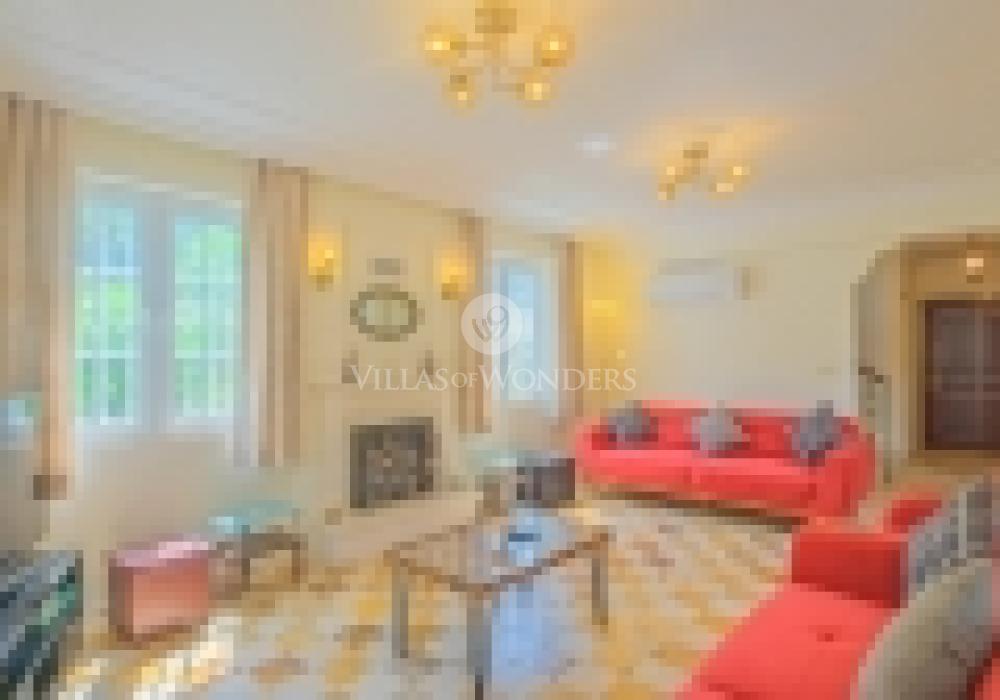 Salon: LCD TV, uydu yayını, şömine, klima, oturma grupları