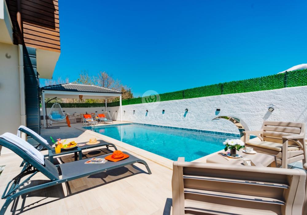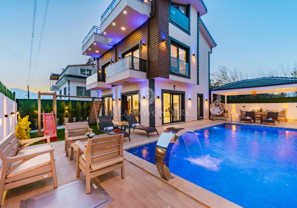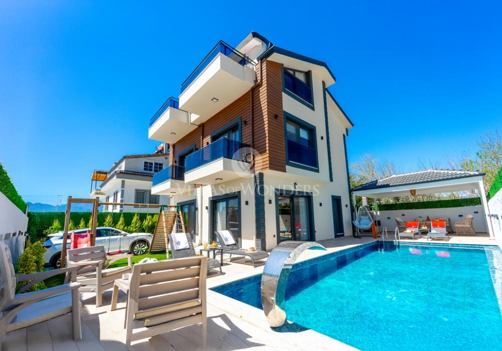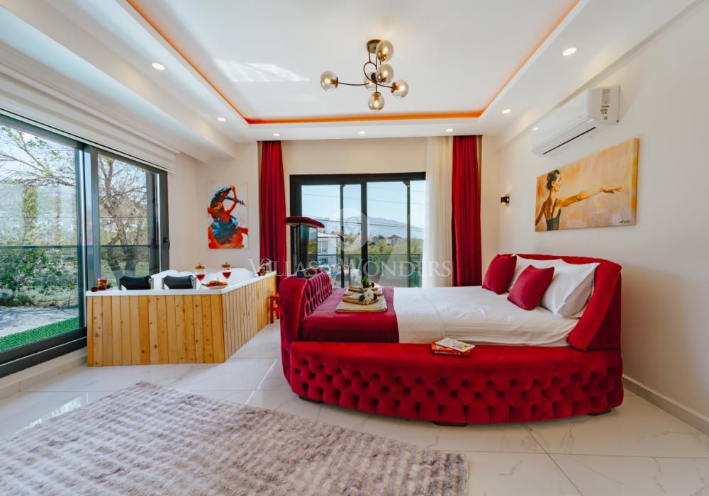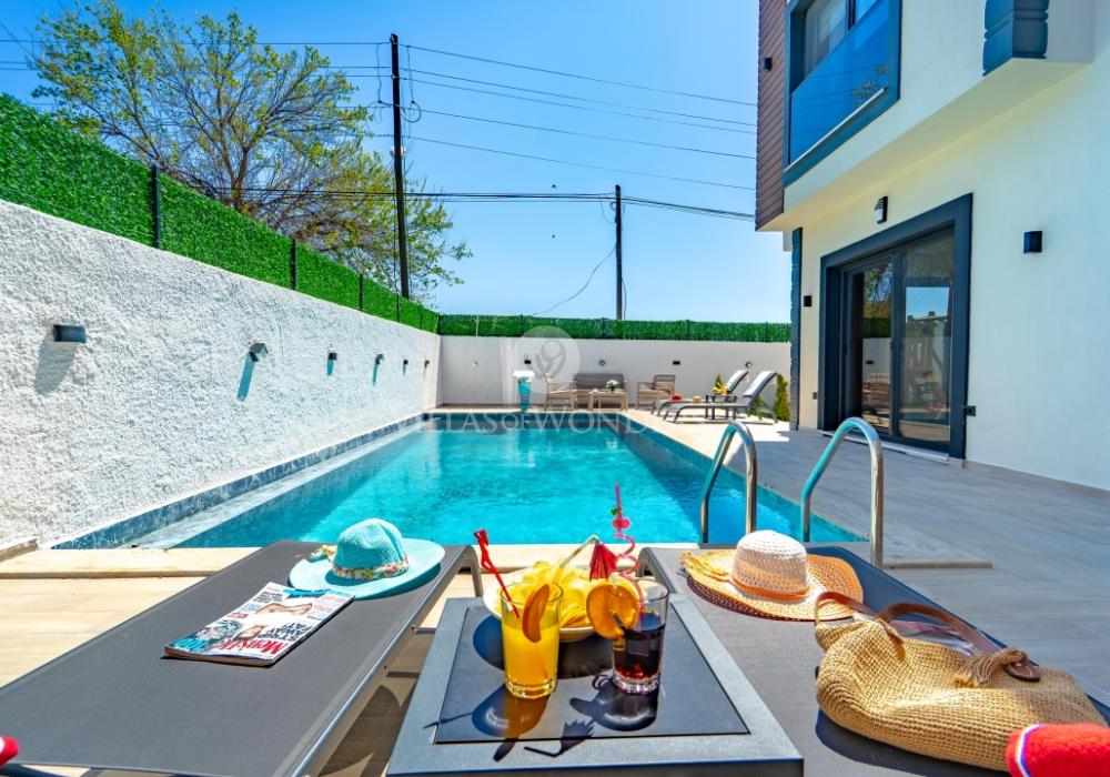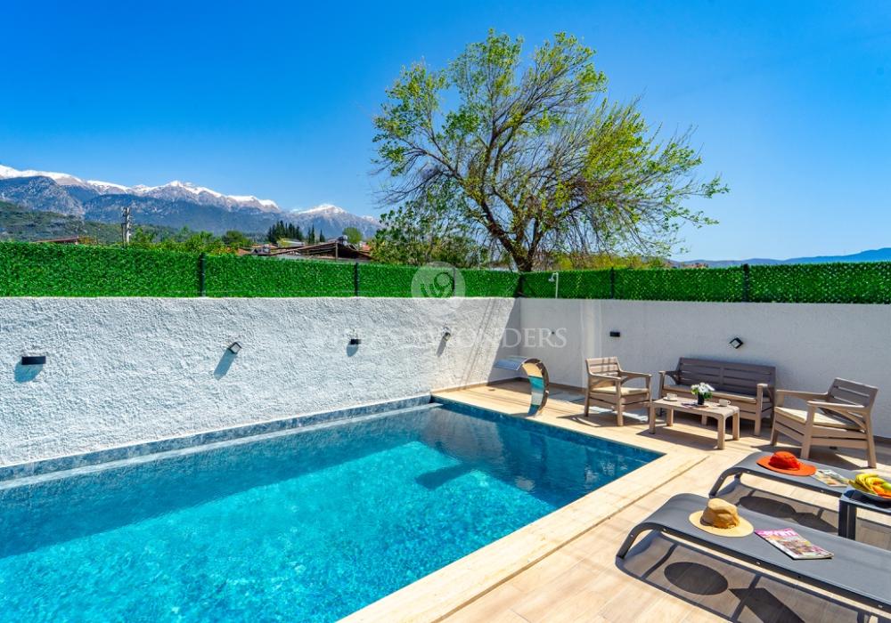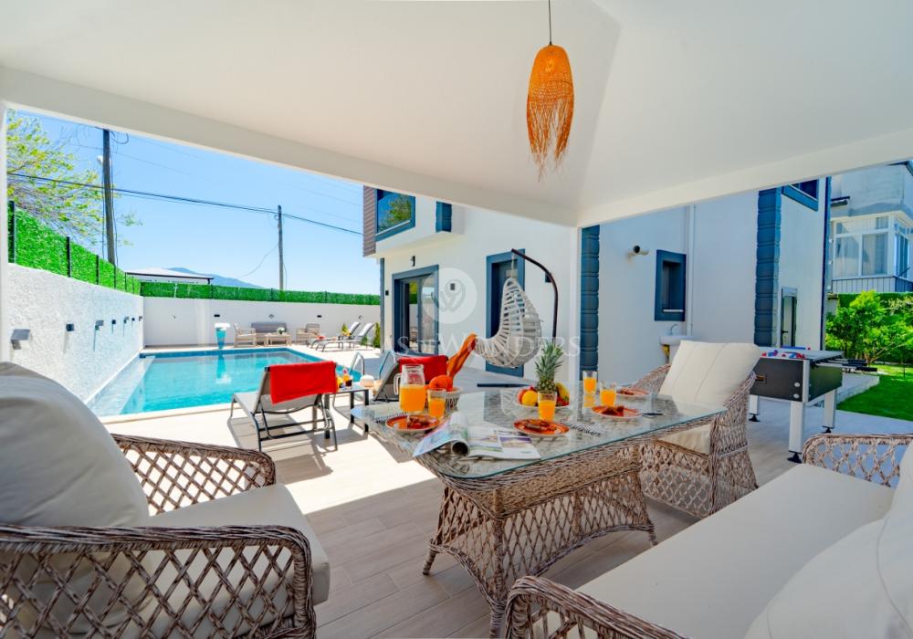 Seydikemer’de doğa ile iç içe, 8 kişilik lüks villamız; 4 yatak odası, 4 banyosu, özel havuzu ve korunaklı yapısı ile aileler ve arkadaş grupları için mükemmel bir tatil seçeneğidir. Huzurlu, konforlu ve unutulmaz bir tatil için hemen rezervasyon yapın!